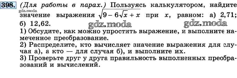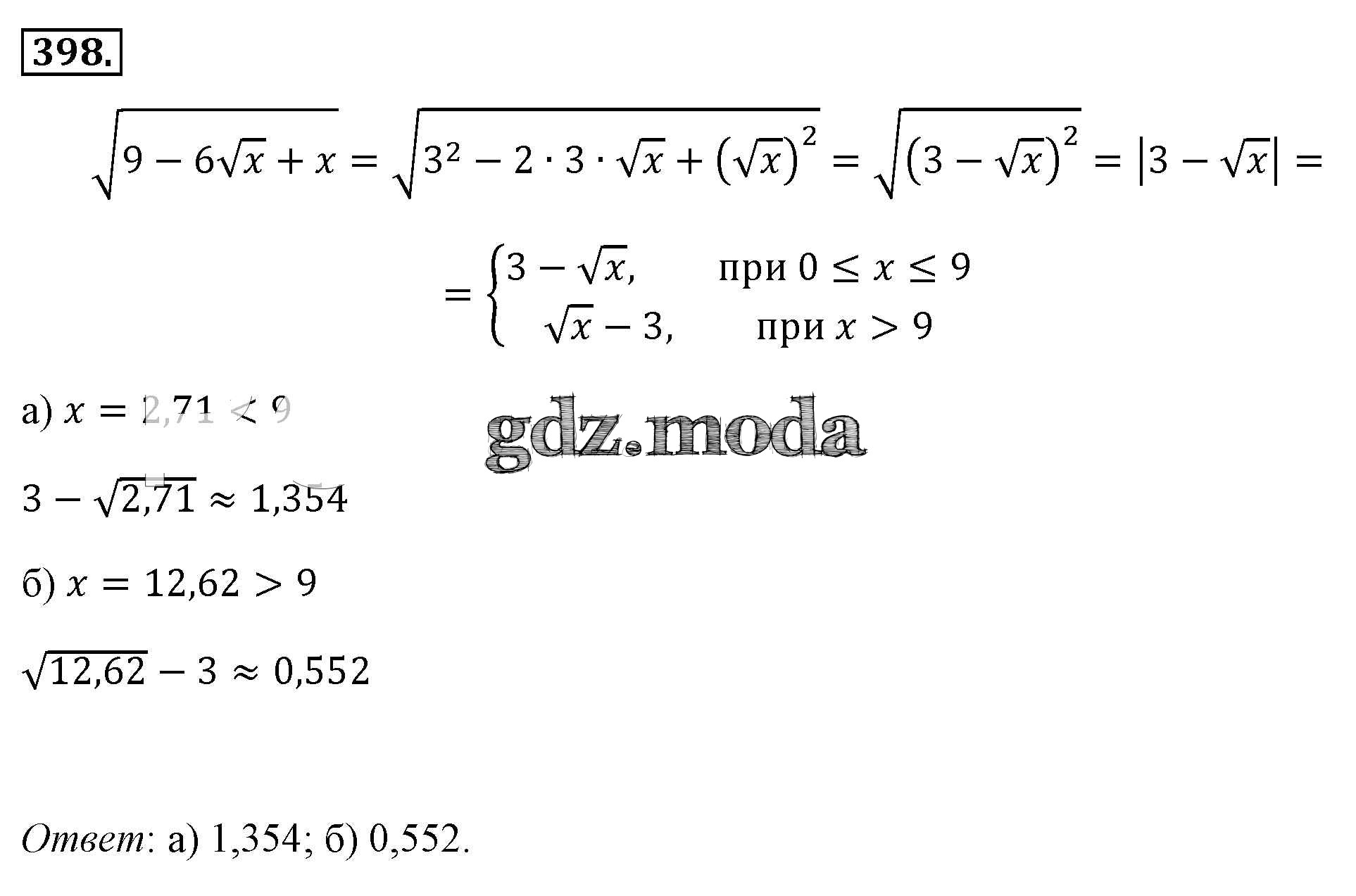 ОТВЕТ на задание № 398 Учебник по Алгебре 8 класс Макарычев