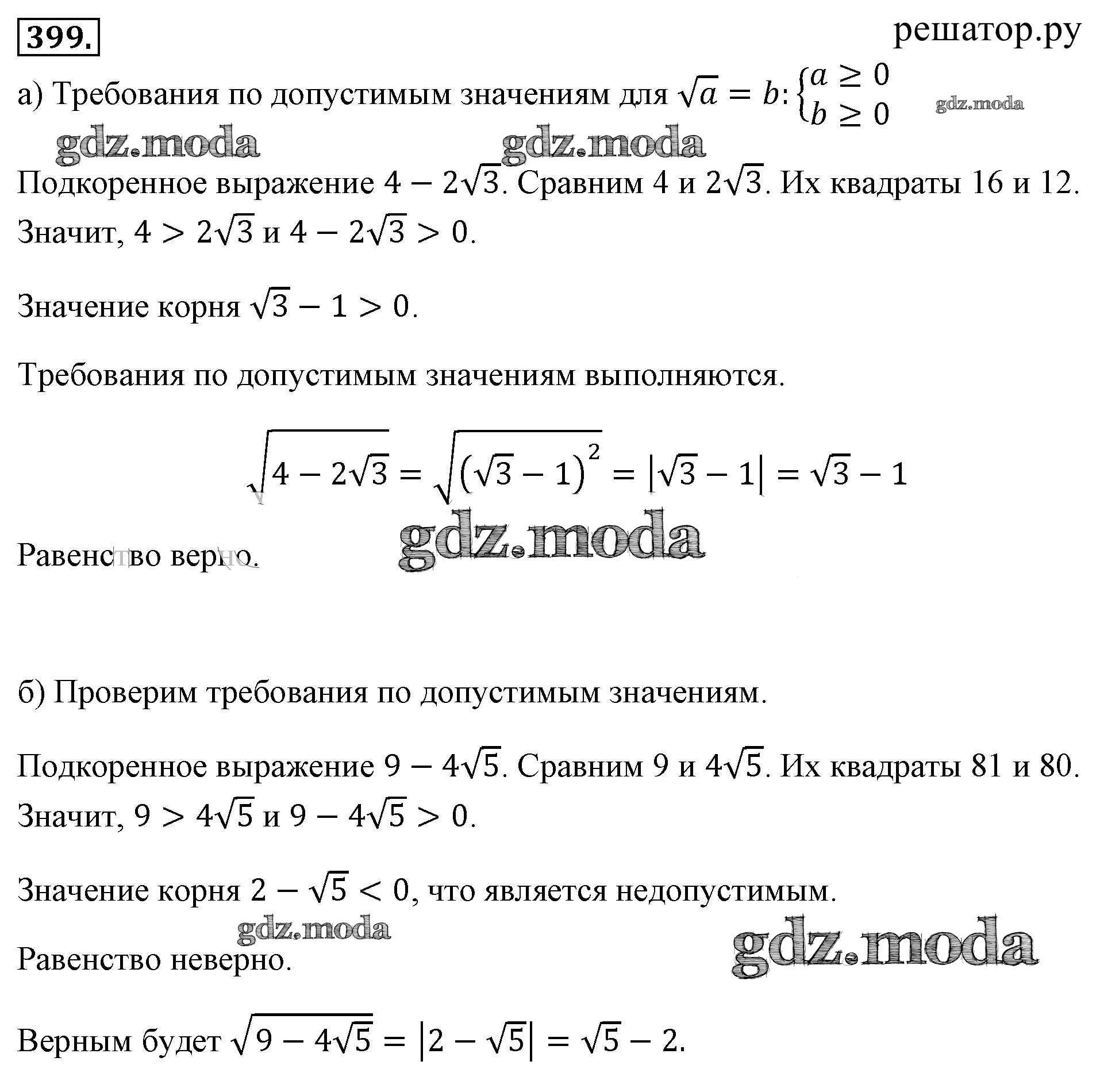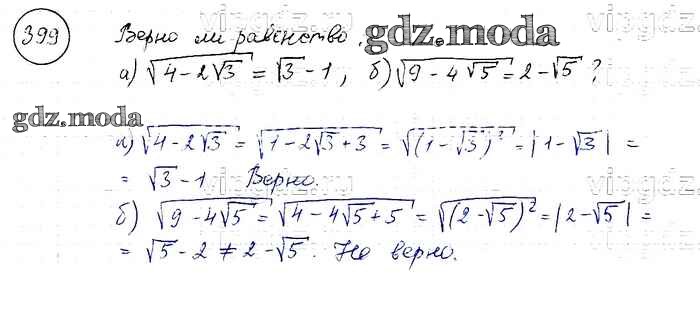 ОТВЕТ на задание № 399 Учебник по Алгебре 8 класс Макарычев