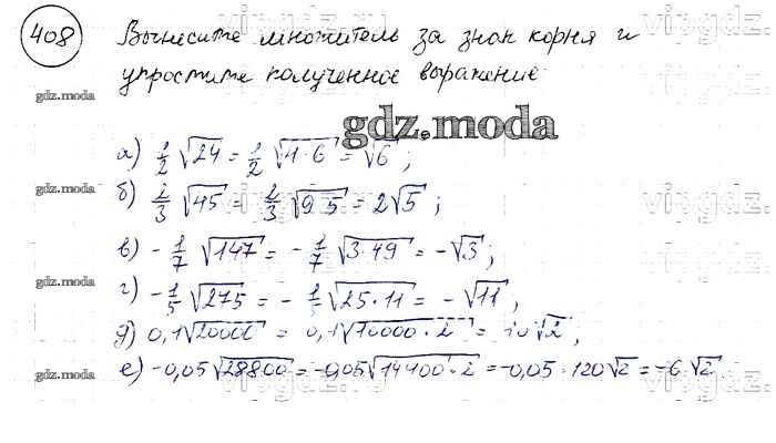 ОТВЕТ на задание № 408 Учебник по Алгебре 8 класс Макарычев