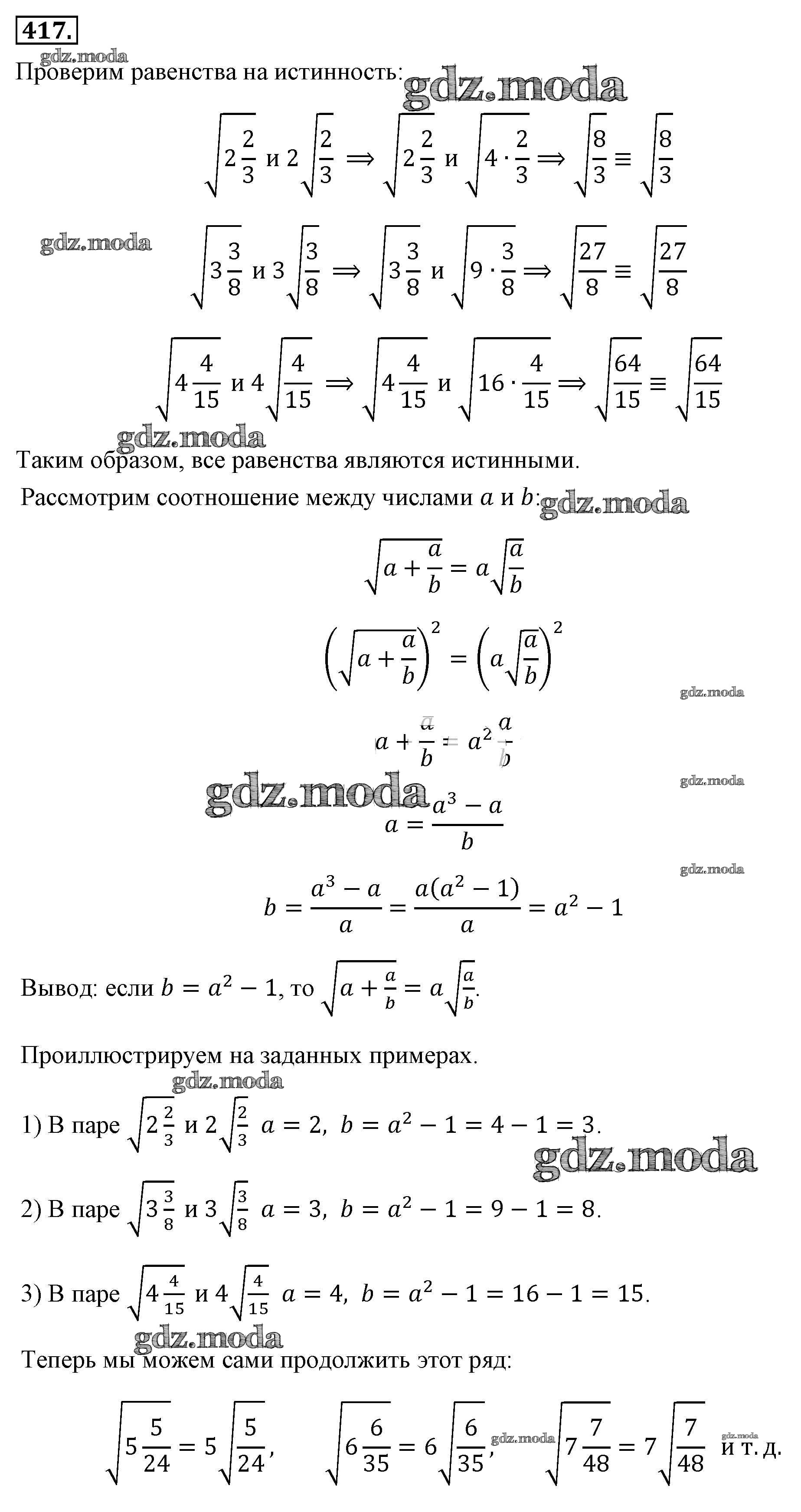ОТВЕТ на задание № 417 Учебник по Алгебре 8 класс Макарычев