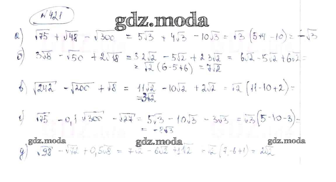 ОТВЕТ на задание № 421 Учебник по Алгебре 8 класс Макарычев