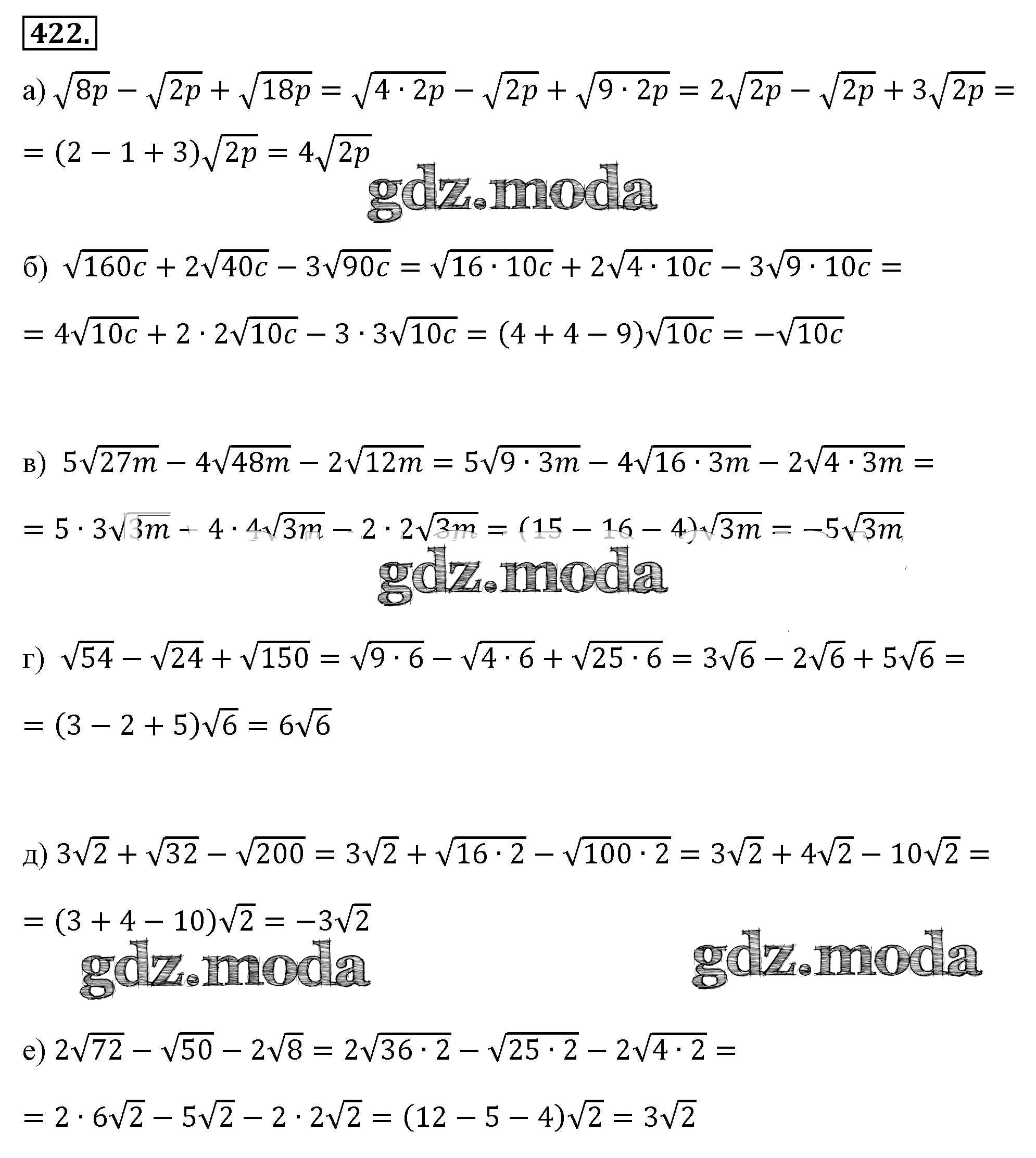 ОТВЕТ на задание № 422 Учебник по Алгебре 8 класс Макарычев
