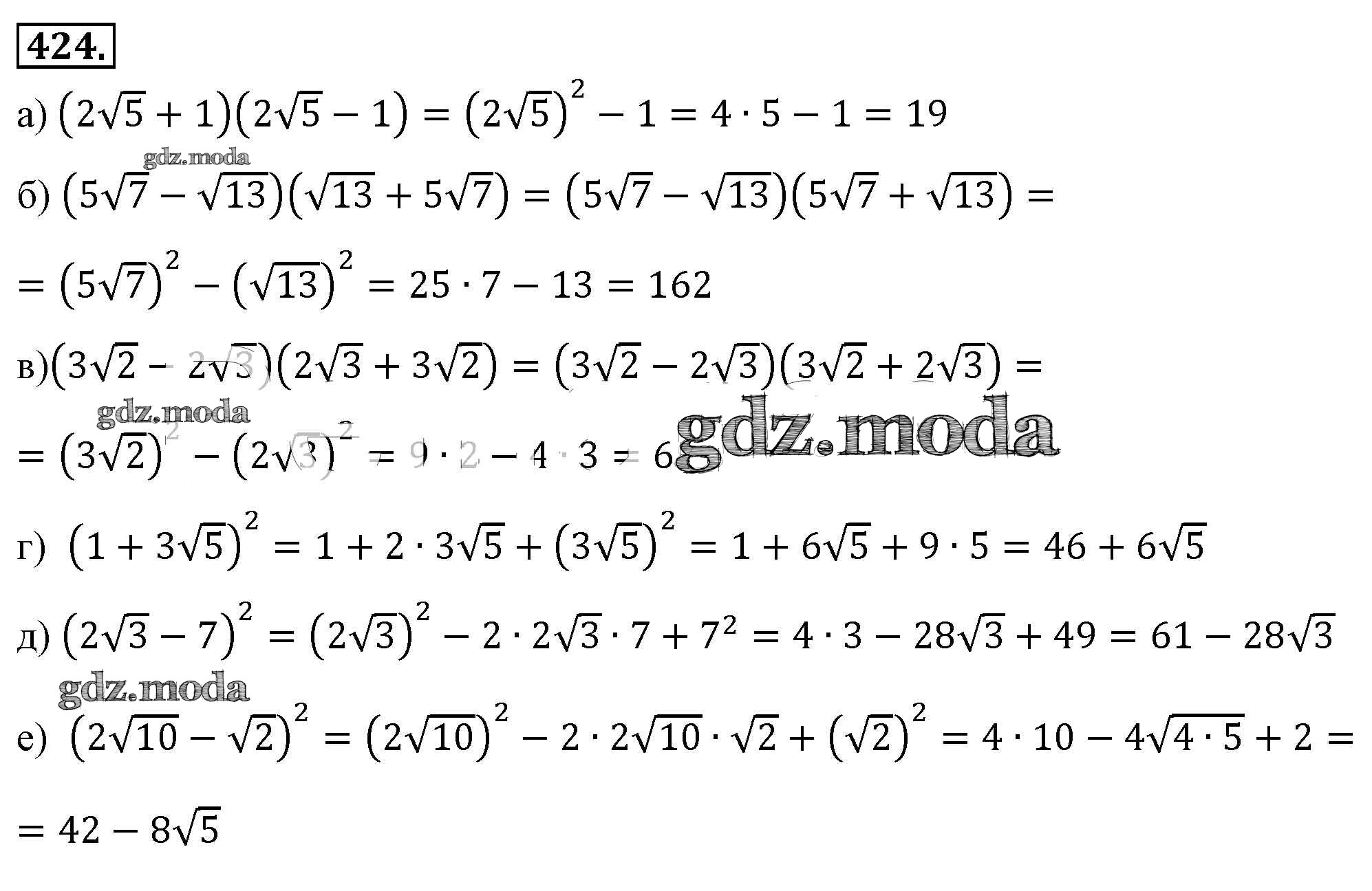 ОТВЕТ на задание № 424 Учебник по Алгебре 8 класс Макарычев