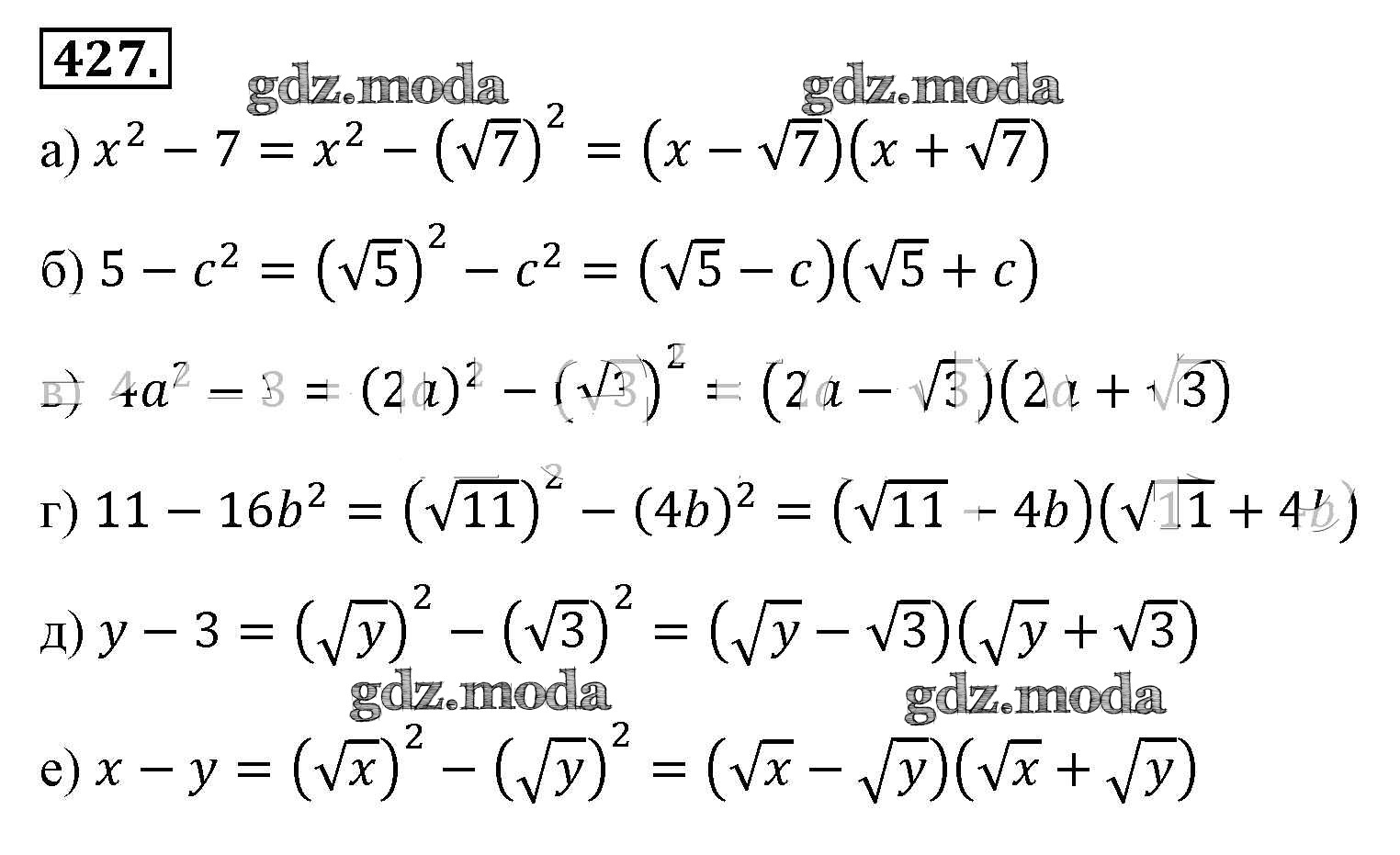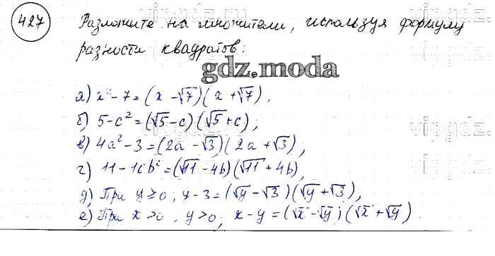 ОТВЕТ на задание № 427 Учебник по Алгебре 8 класс Макарычев