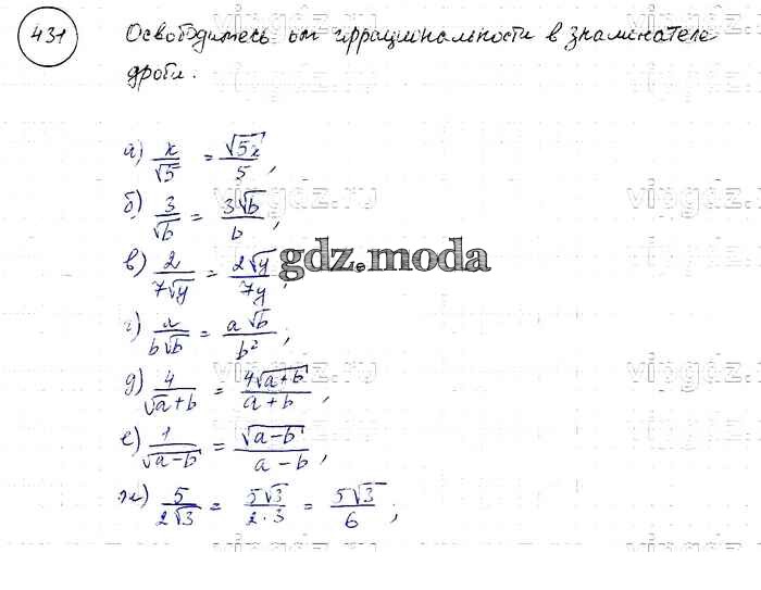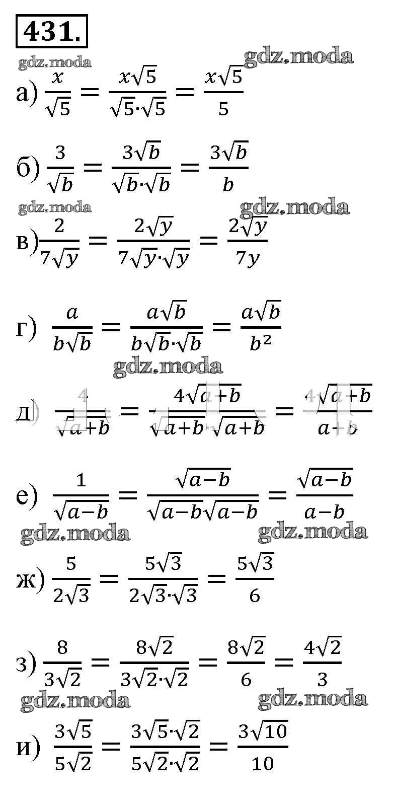 ОТВЕТ на задание № 431 Учебник по Алгебре 8 класс Макарычев