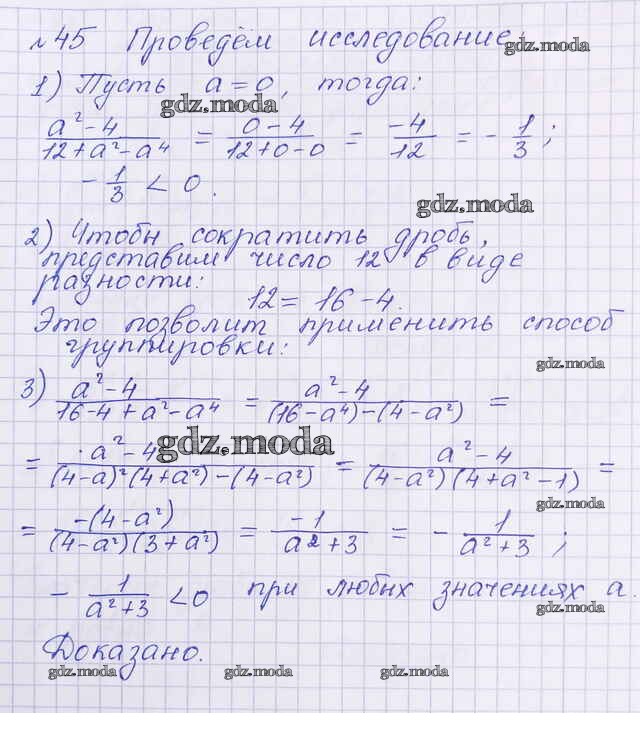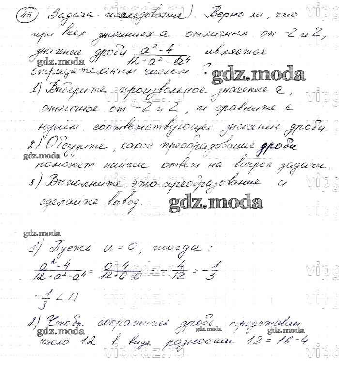 ОТВЕТ на задание № 45 Учебник по Алгебре 8 класс Макарычев