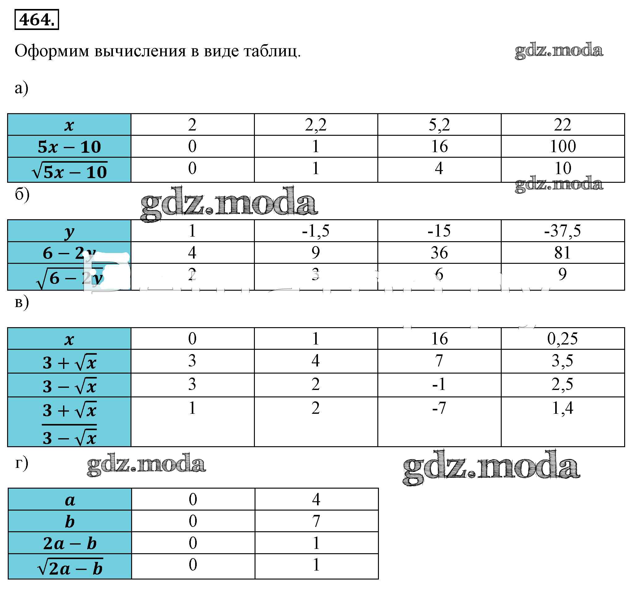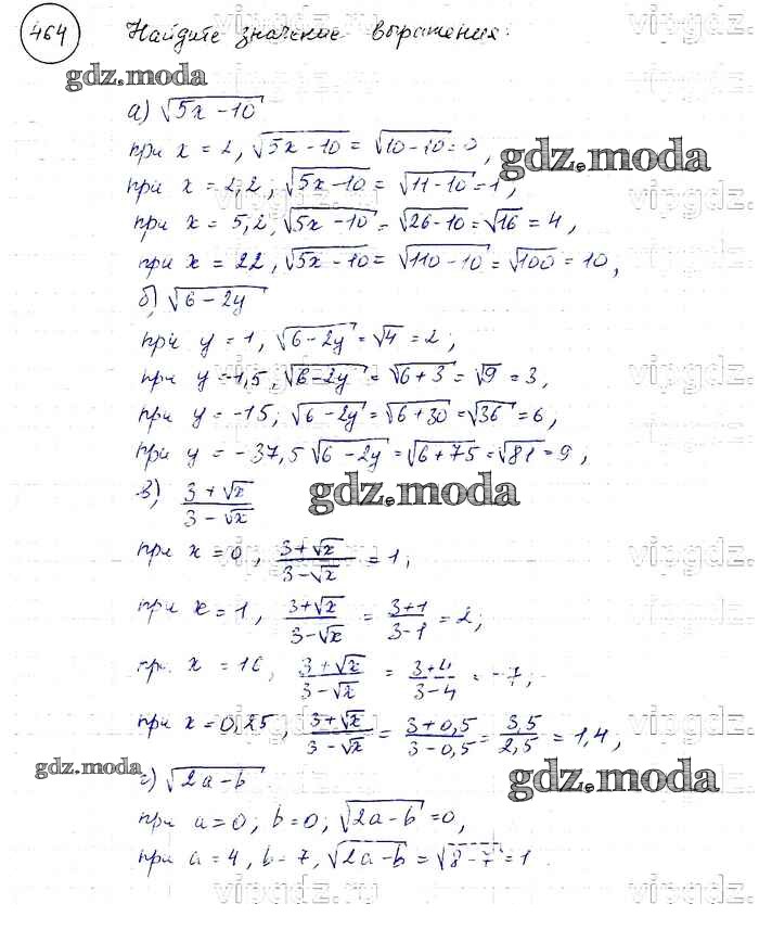 ОТВЕТ на задание № 464 Учебник по Алгебре 8 класс Макарычев
