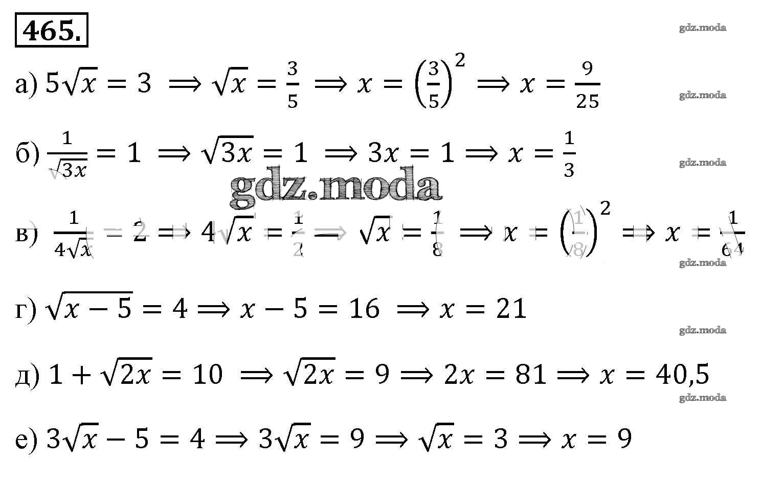 ОТВЕТ на задание № 465 Учебник по Алгебре 8 класс Макарычев