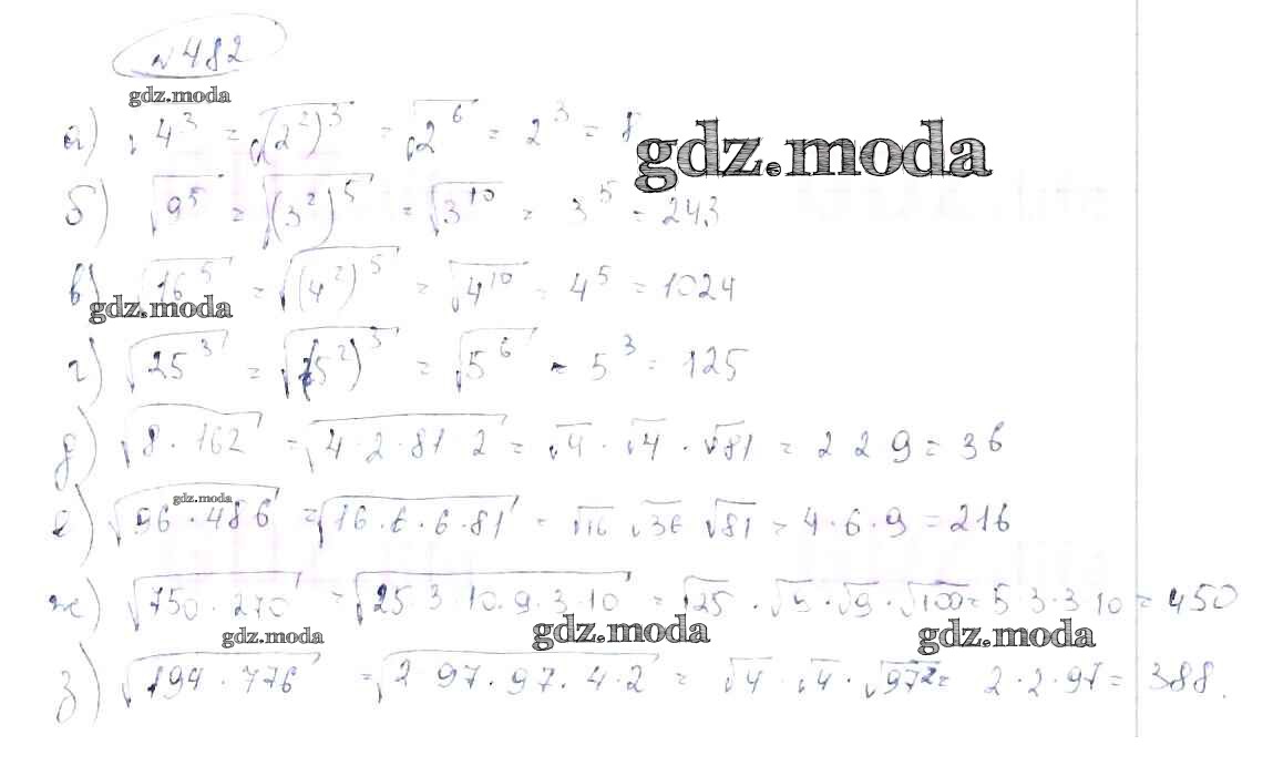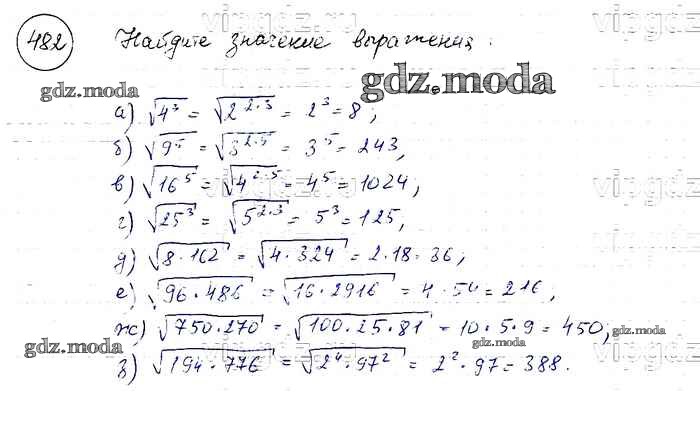 ОТВЕТ на задание № 482 Учебник по Алгебре 8 класс Макарычев