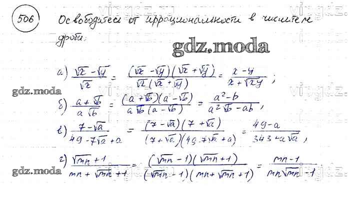 ОТВЕТ на задание № 506 Учебник по Алгебре 8 класс Макарычев