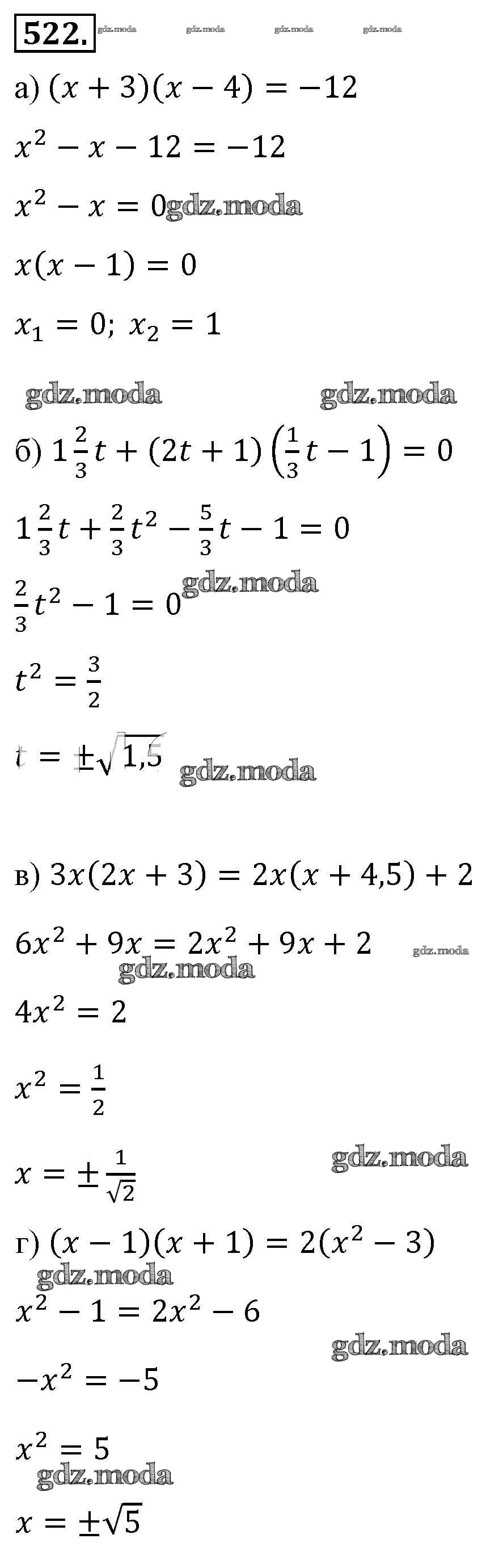 ОТВЕТ на задание № 522 Учебник по Алгебре 8 класс Макарычев