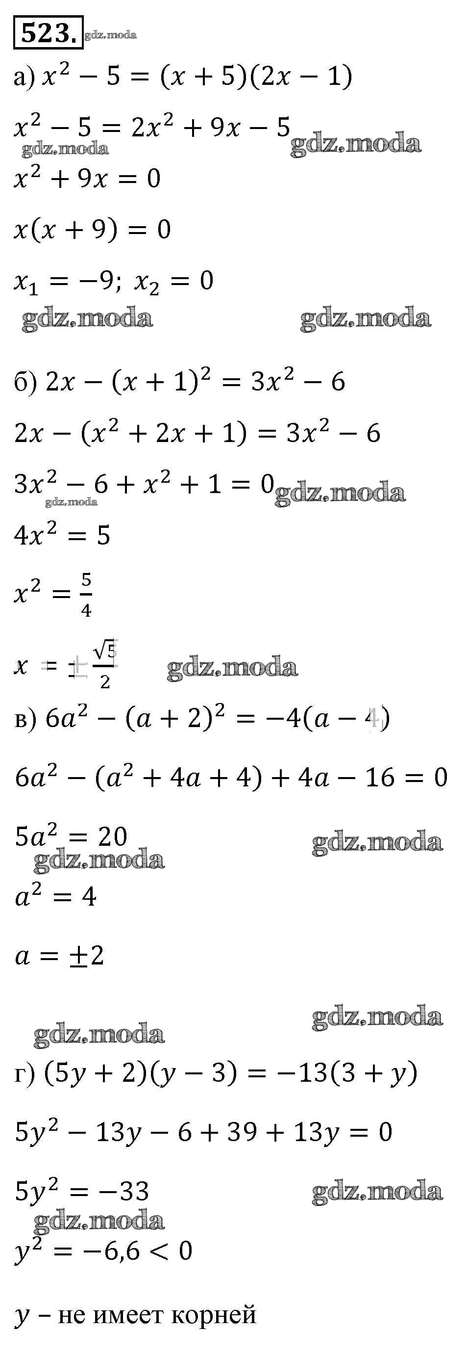 ОТВЕТ на задание № 523 Учебник по Алгебре 8 класс Макарычев