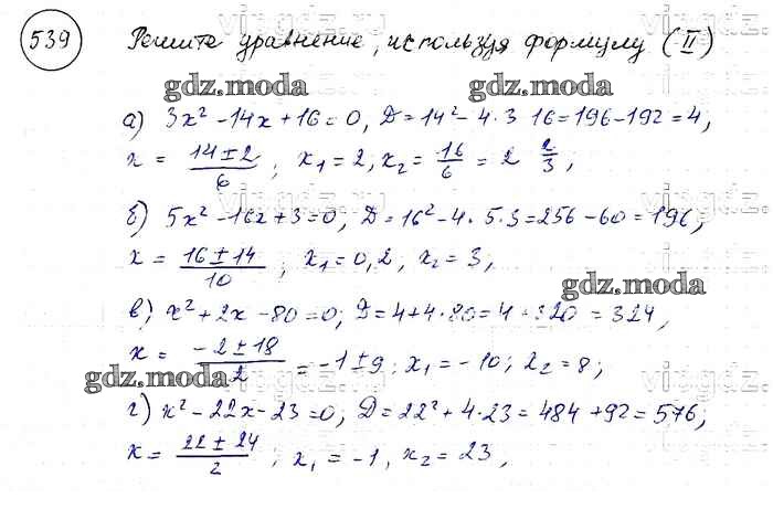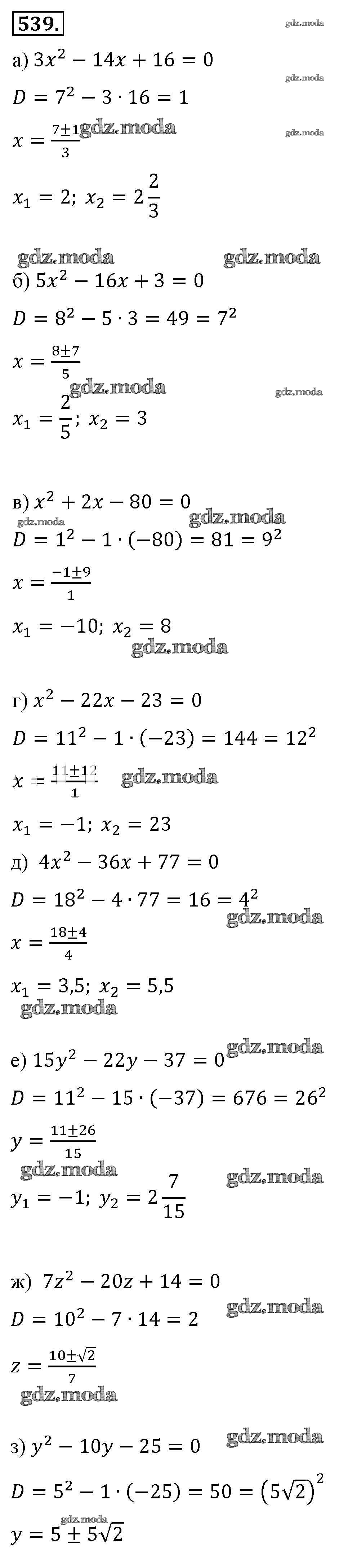 ОТВЕТ на задание № 539 Учебник по Алгебре 8 класс Макарычев