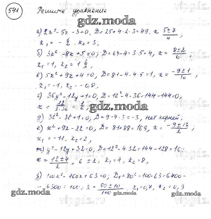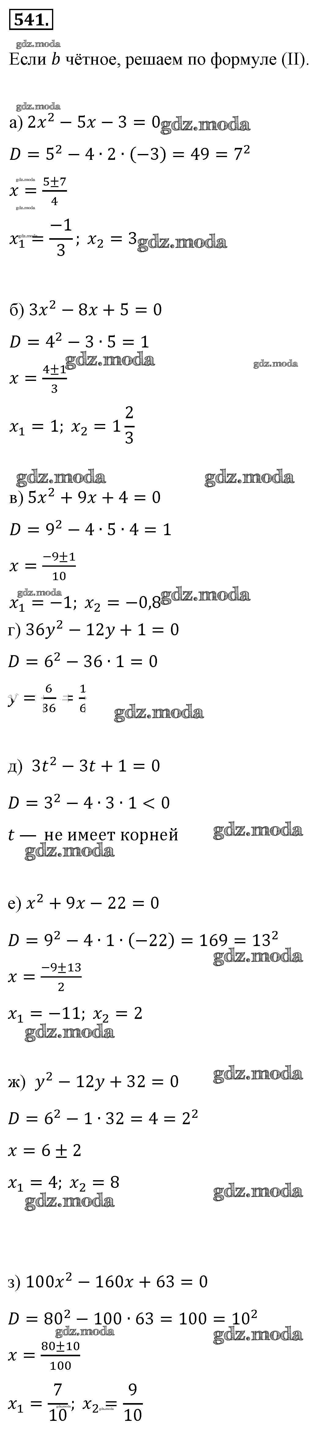 ОТВЕТ на задание № 541 Учебник по Алгебре 8 класс Макарычев