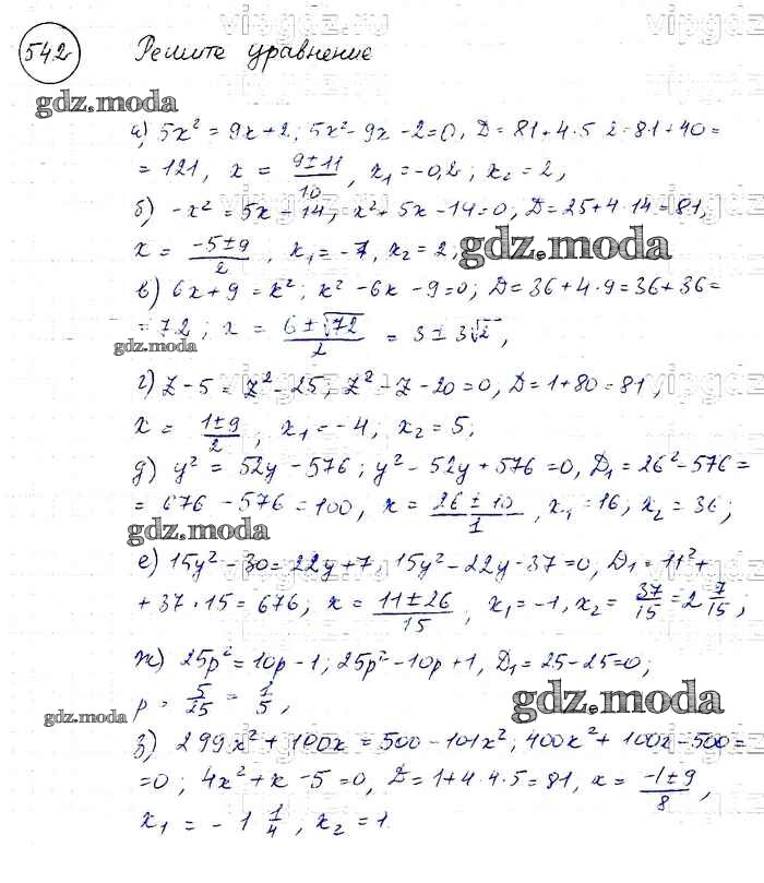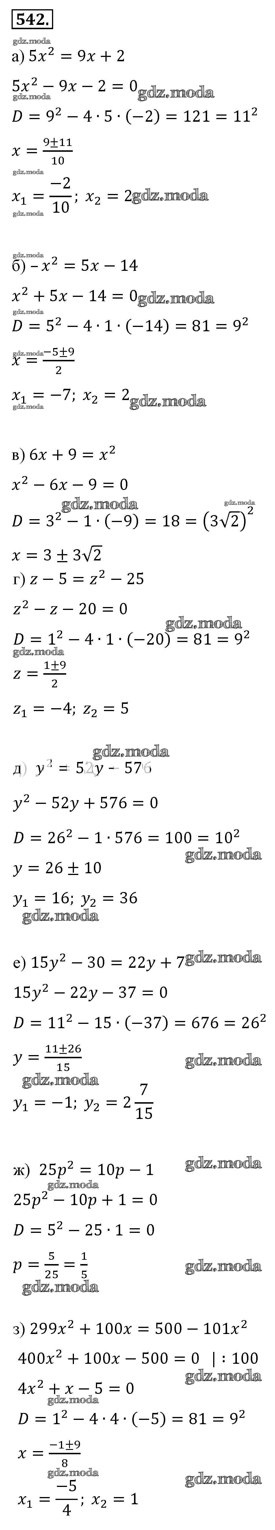 ОТВЕТ на задание № 542 Учебник по Алгебре 8 класс Макарычев