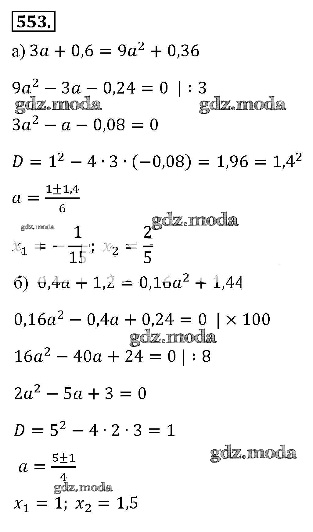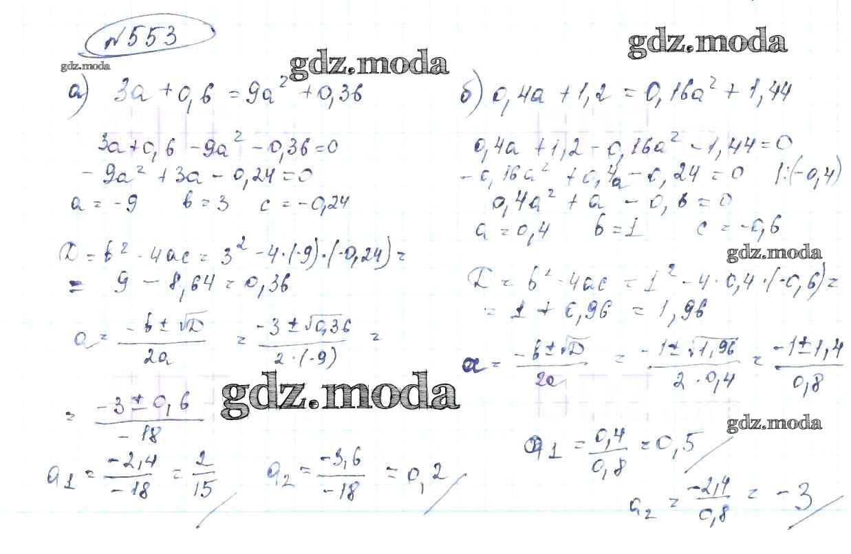 ОТВЕТ на задание № 553 Учебник по Алгебре 8 класс Макарычев