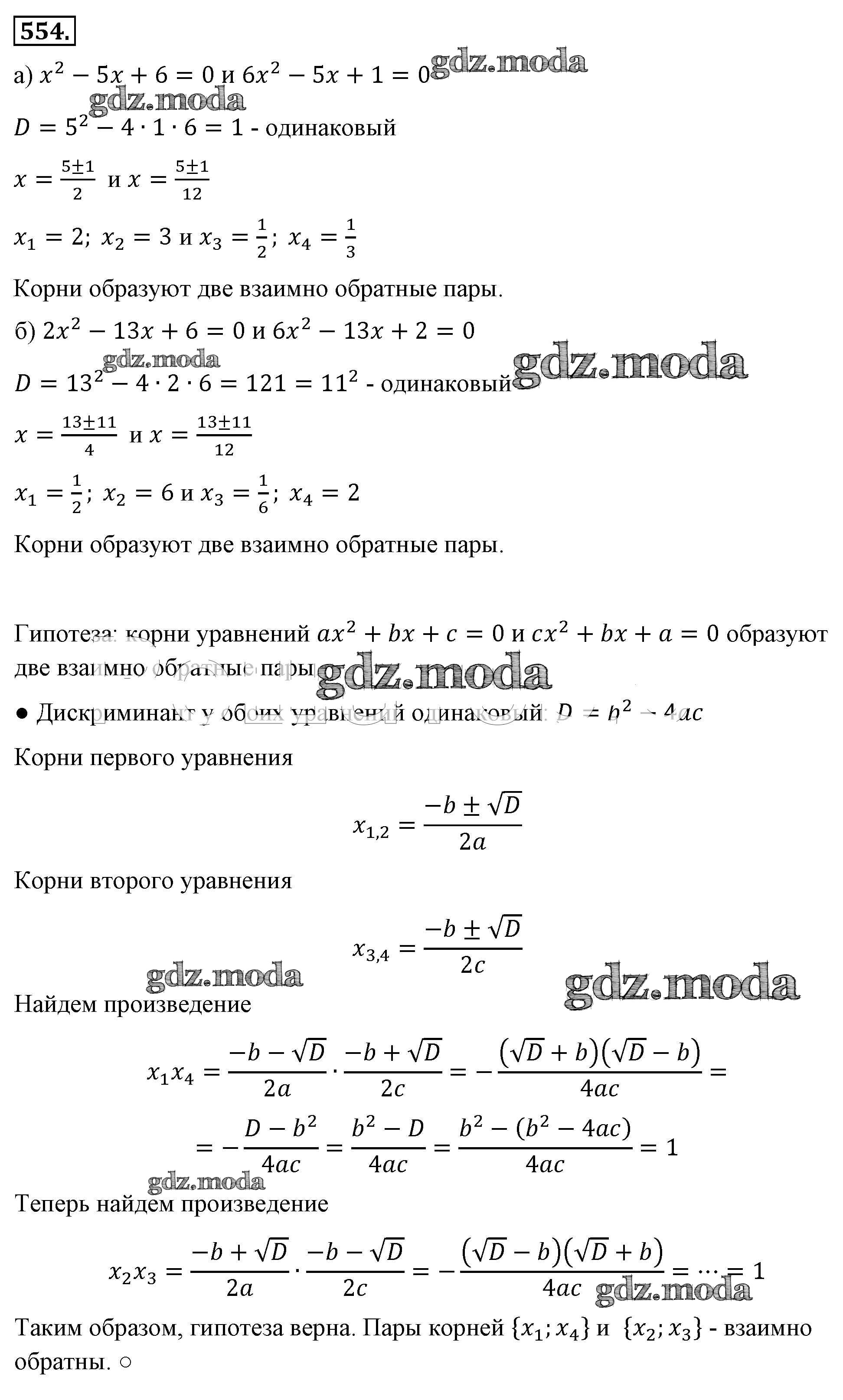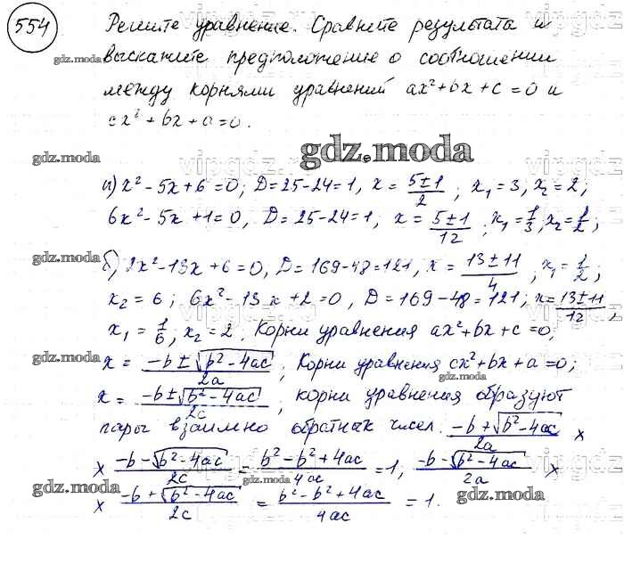 ОТВЕТ на задание № 554 Учебник по Алгебре 8 класс Макарычев