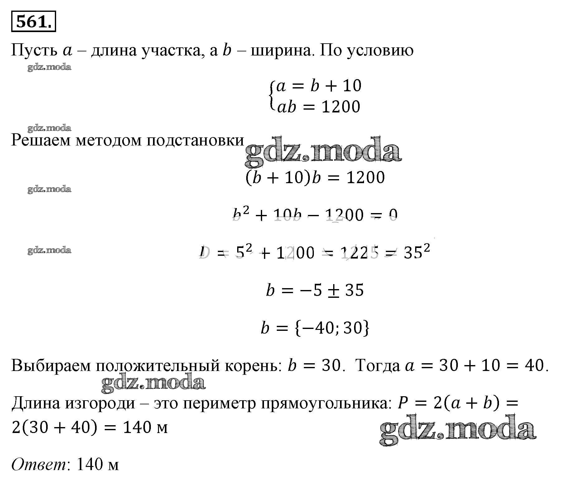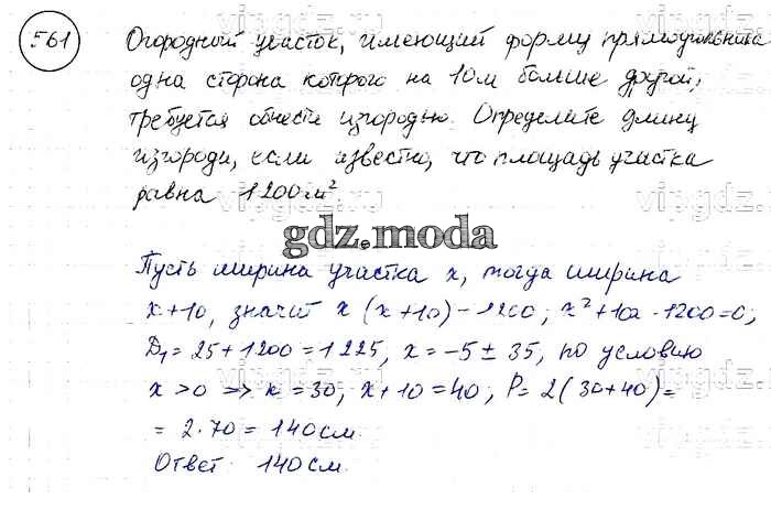 ОТВЕТ на задание № 561 Учебник по Алгебре 8 класс Макарычев