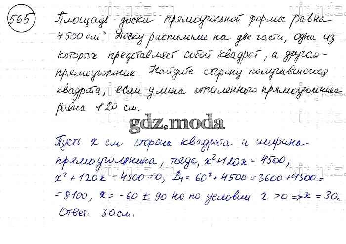 ОТВЕТ на задание № 565 Учебник по Алгебре 8 класс Макарычев