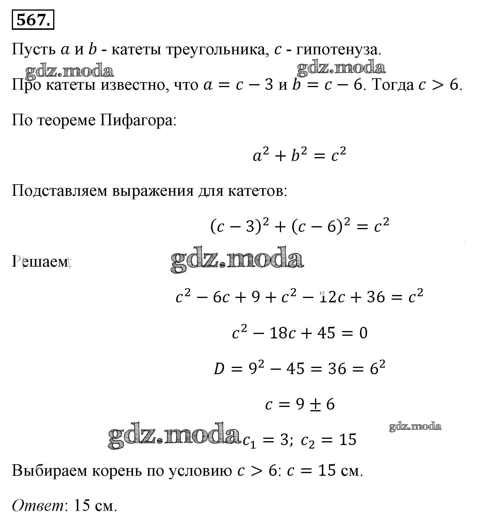 ОТВЕТ на задание № 567 Учебник по Алгебре 8 класс Макарычев