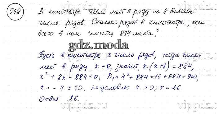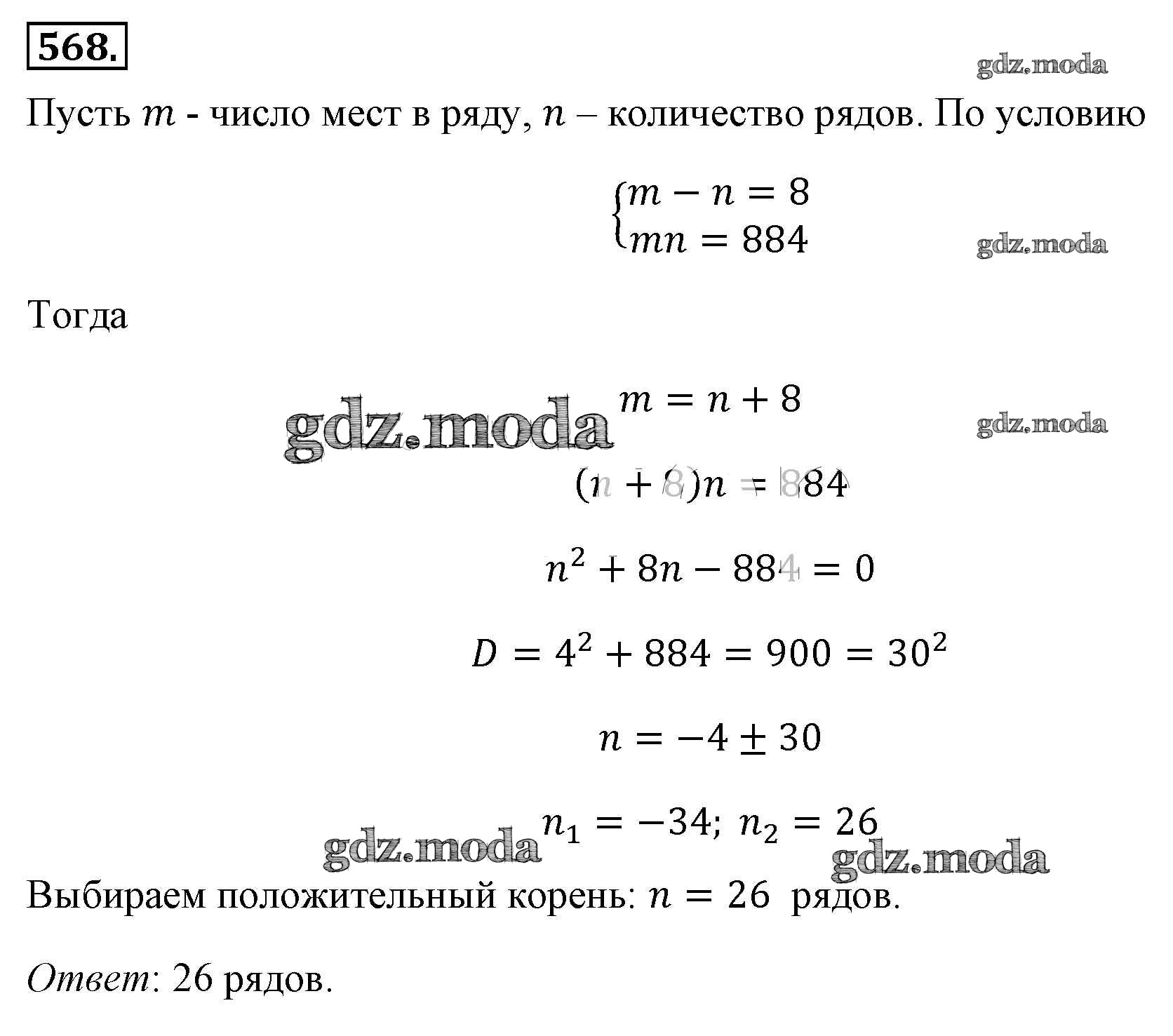 ОТВЕТ на задание № 568 Учебник по Алгебре 8 класс Макарычев