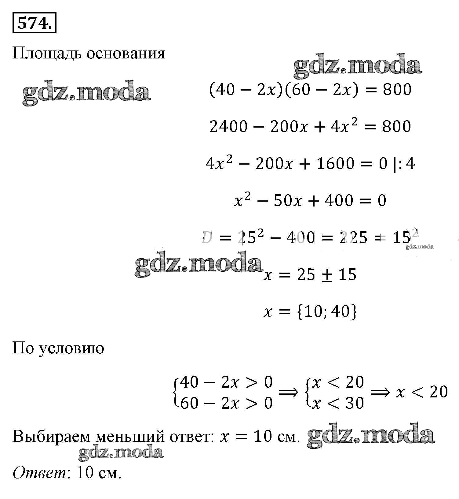 ОТВЕТ на задание № 574 Учебник по Алгебре 8 класс Макарычев