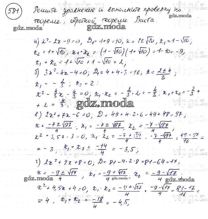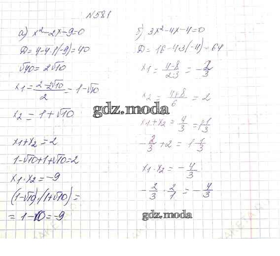 ОТВЕТ на задание № 581 Учебник по Алгебре 8 класс Макарычев