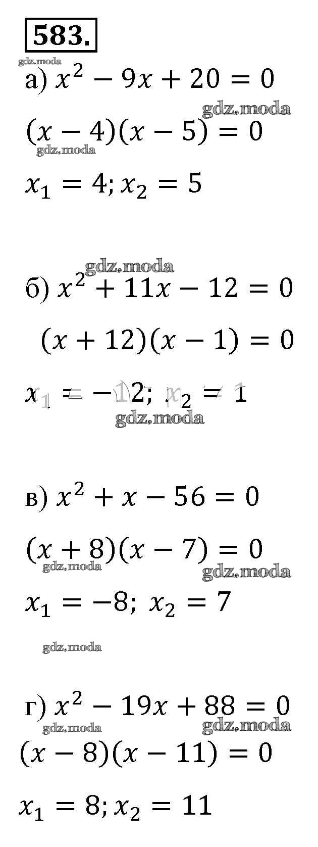 ОТВЕТ на задание № 583 Учебник по Алгебре 8 класс Макарычев