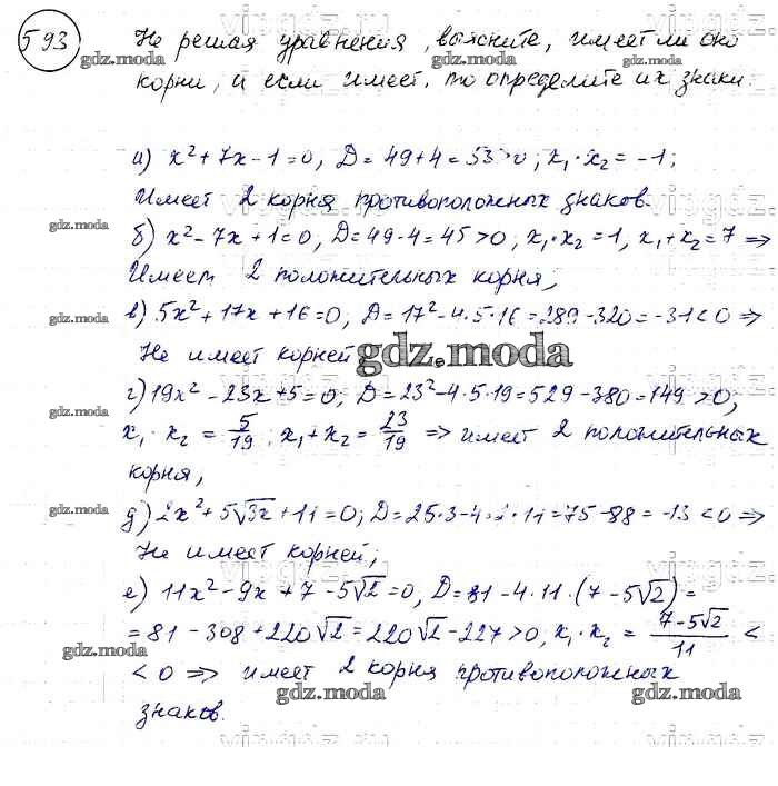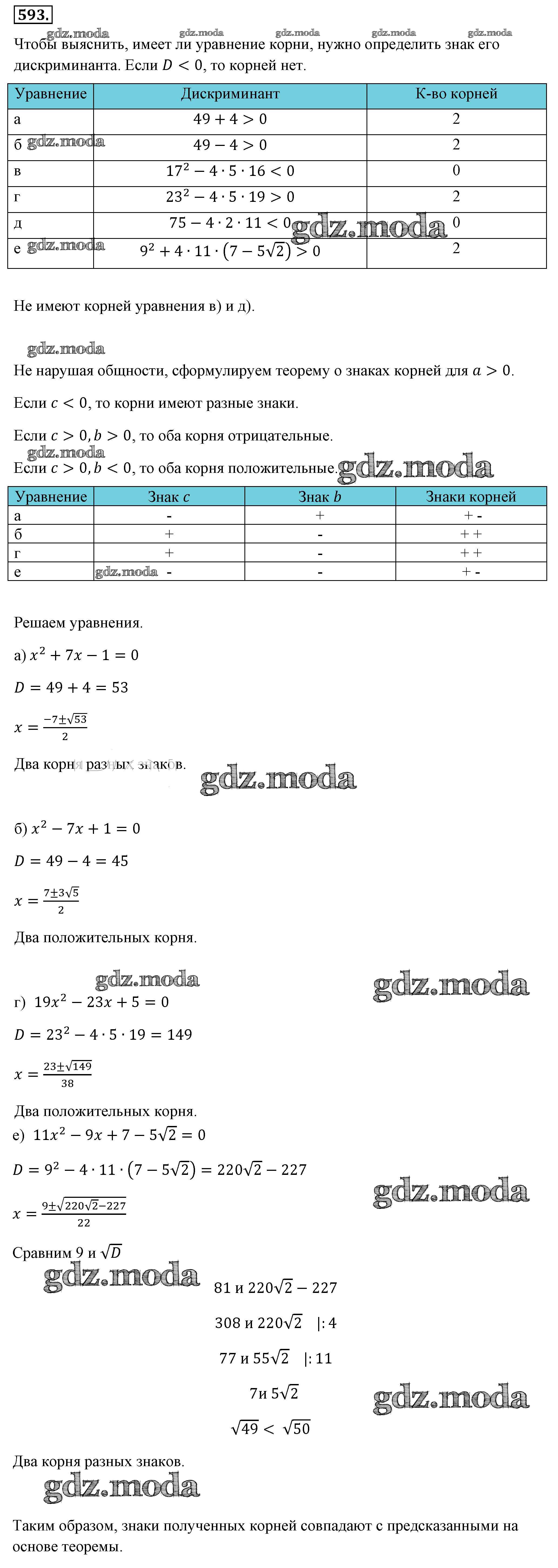 ОТВЕТ на задание № 593 Учебник по Алгебре 8 класс Макарычев