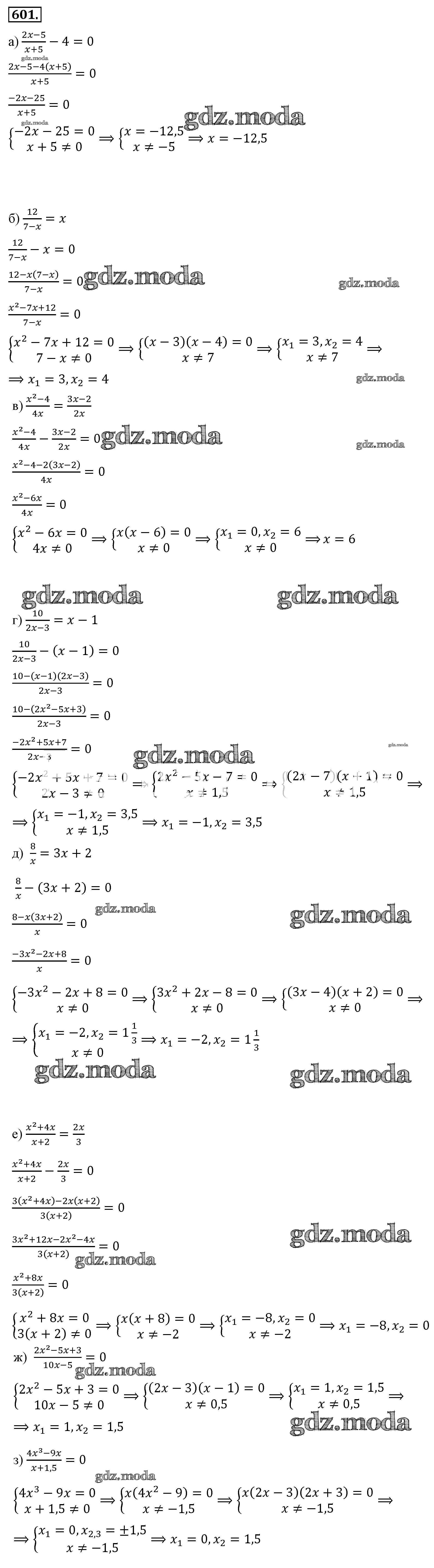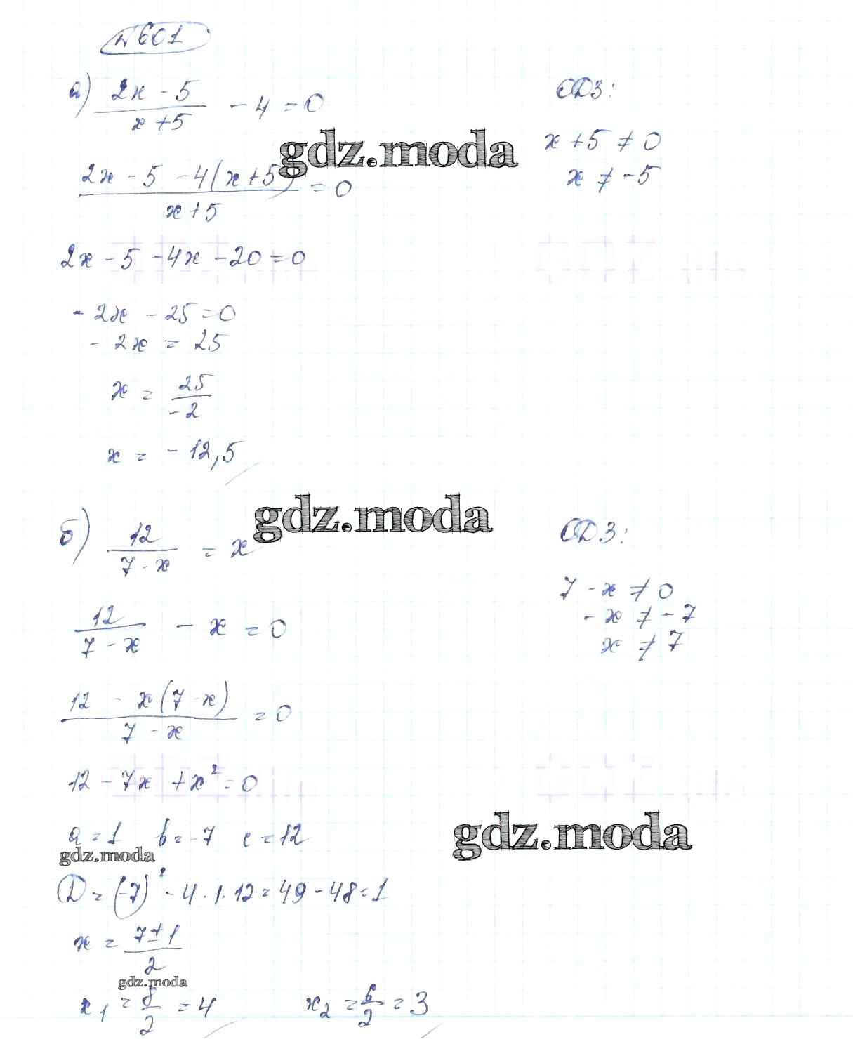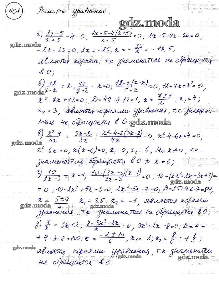 ОТВЕТ на задание № 601 Учебник по Алгебре 8 класс Макарычев