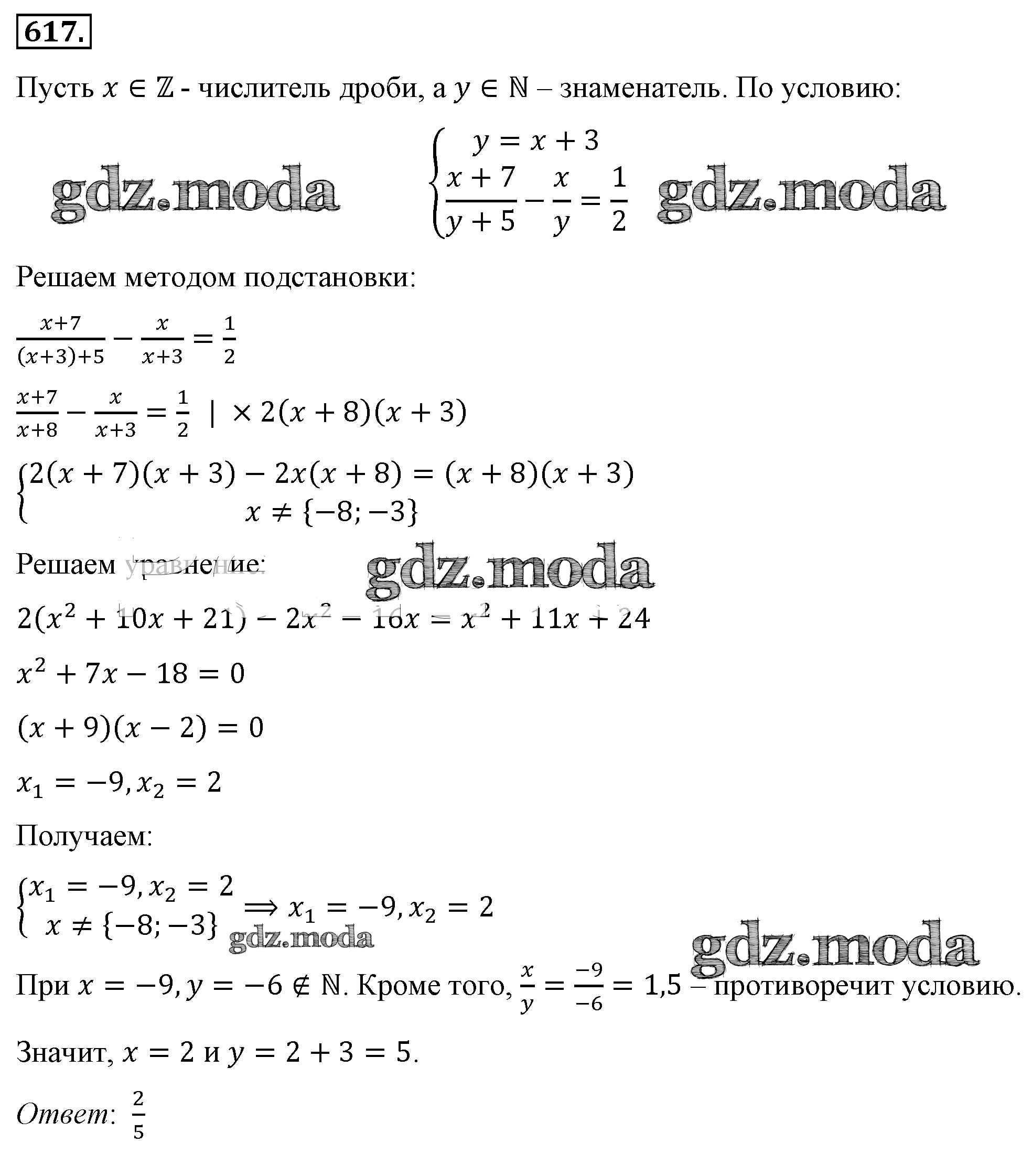 ОТВЕТ на задание № 617 Учебник по Алгебре 8 класс Макарычев