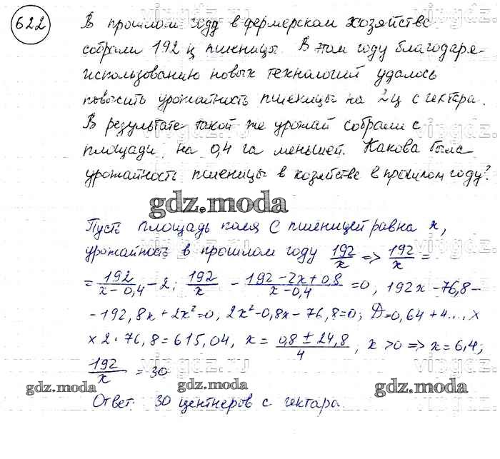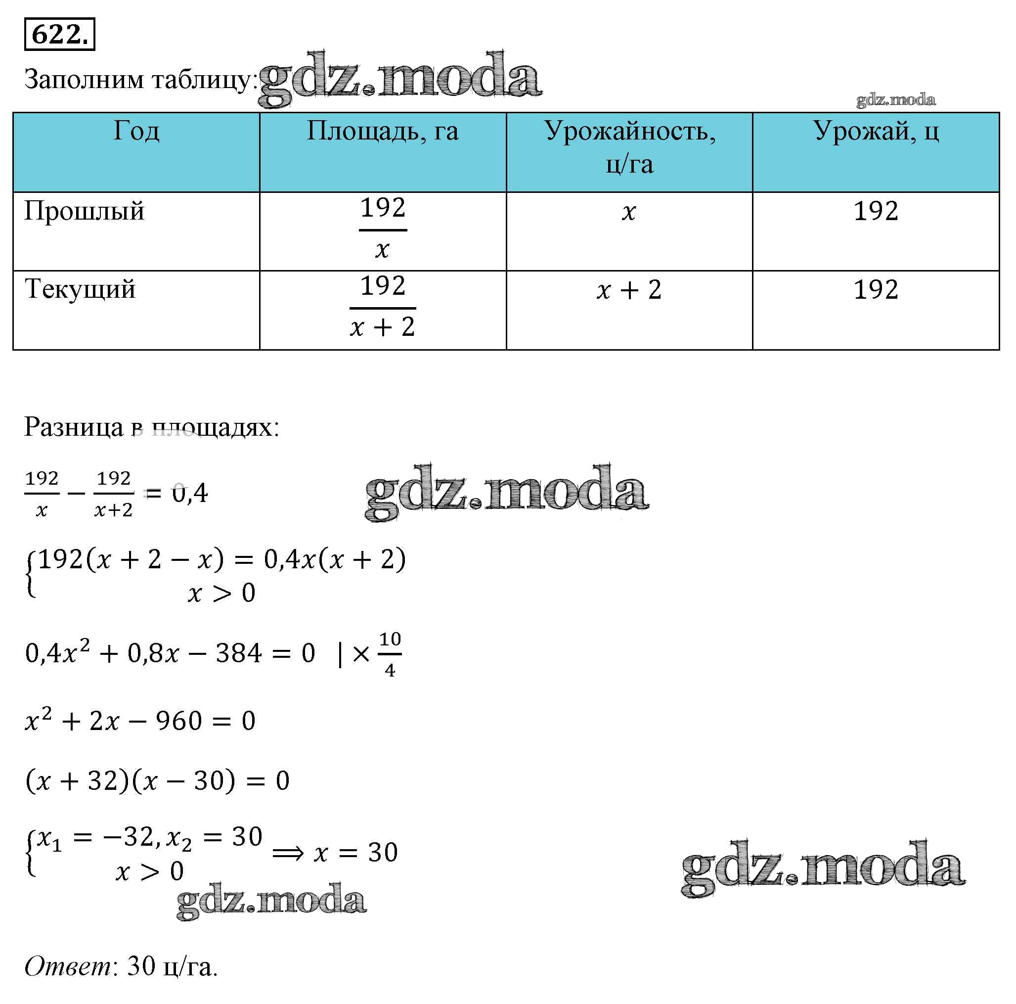 ОТВЕТ на задание № 622 Учебник по Алгебре 8 класс Макарычев