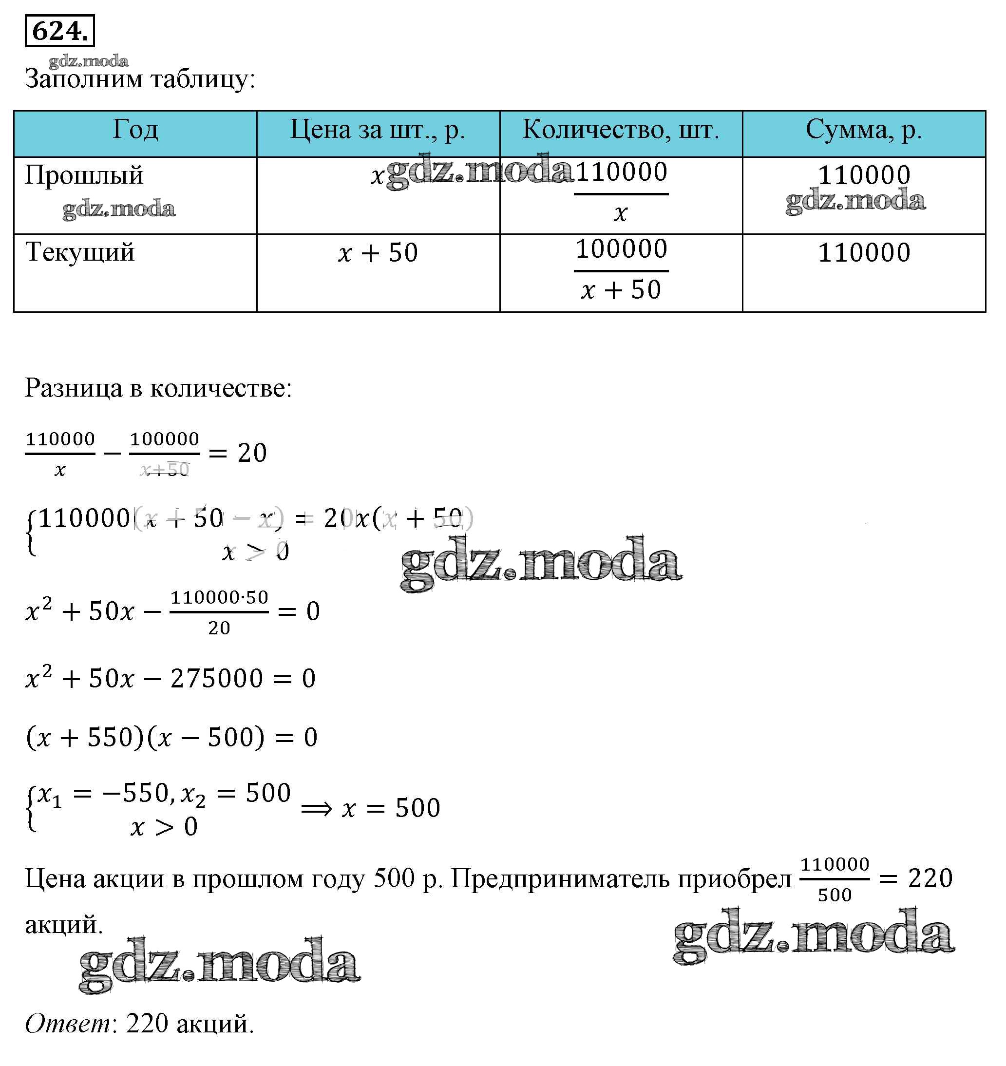 ОТВЕТ на задание № 624 Учебник по Алгебре 8 класс Макарычев