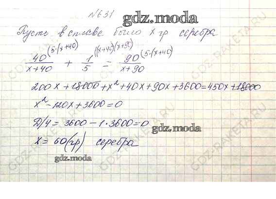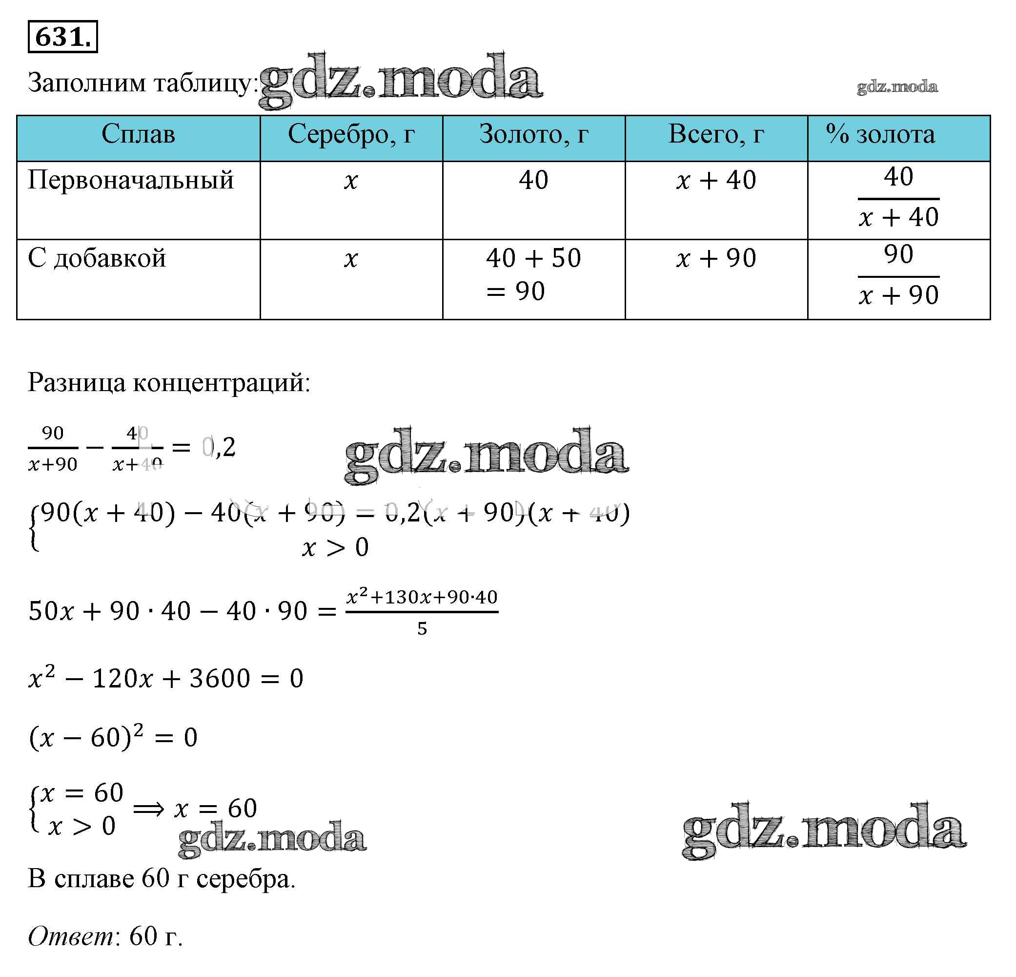 ОТВЕТ на задание № 631 Учебник по Алгебре 8 класс Макарычев