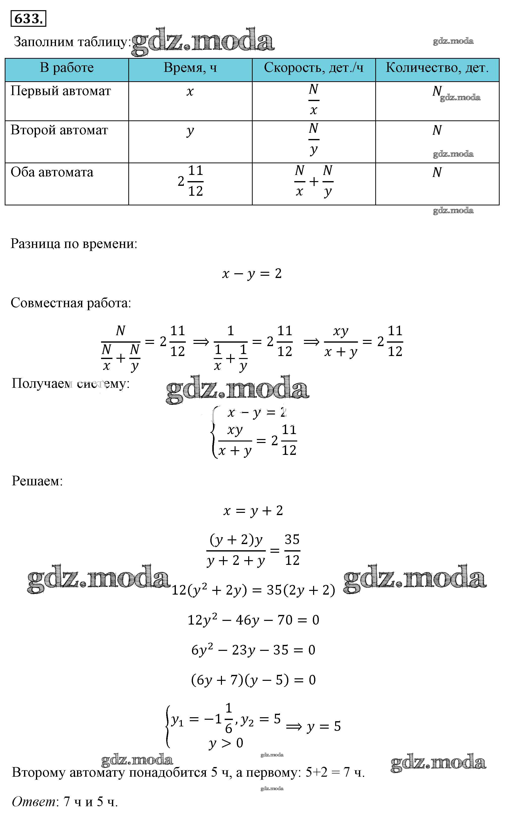 ОТВЕТ на задание № 633 Учебник по Алгебре 8 класс Макарычев