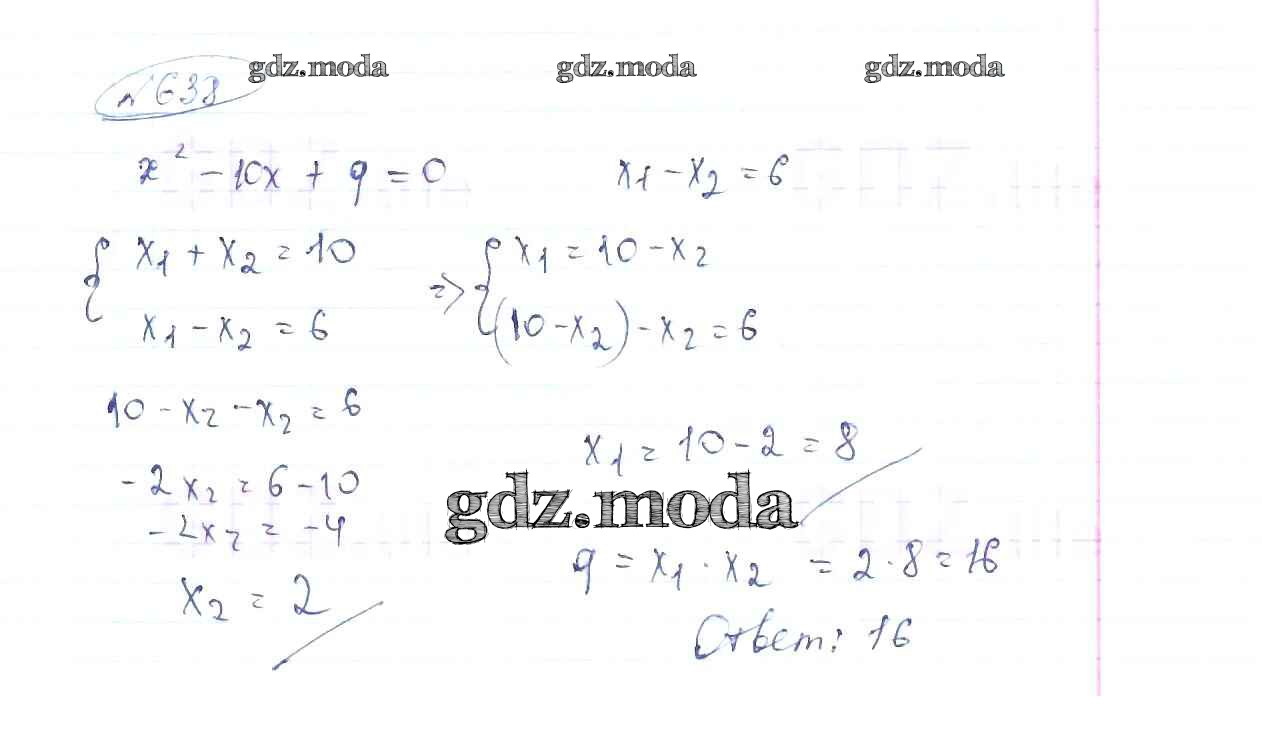 ОТВЕТ на задание № 638 Учебник по Алгебре 8 класс Макарычев