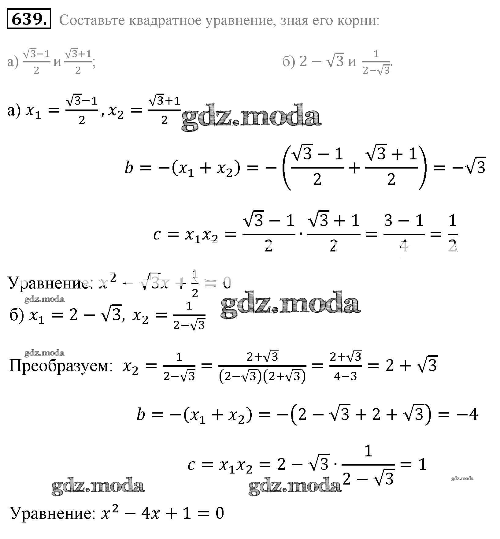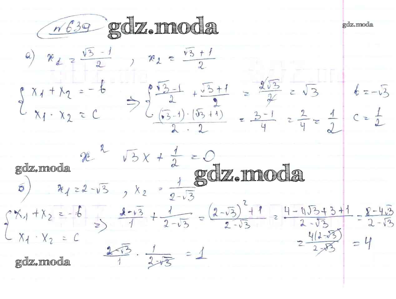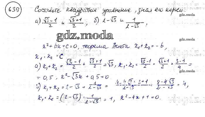 ОТВЕТ на задание № 639 Учебник по Алгебре 8 класс Макарычев