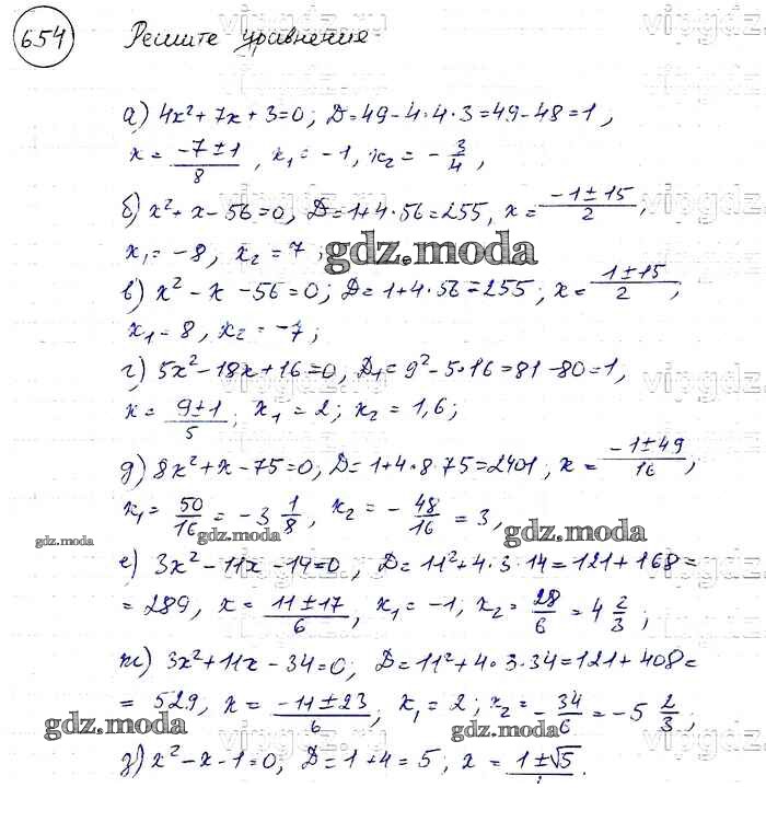 ОТВЕТ на задание № 654 Учебник по Алгебре 8 класс Макарычев