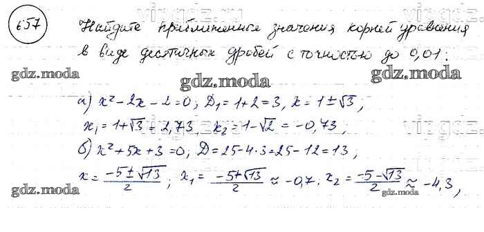 ОТВЕТ на задание № 657 Учебник по Алгебре 8 класс Макарычев