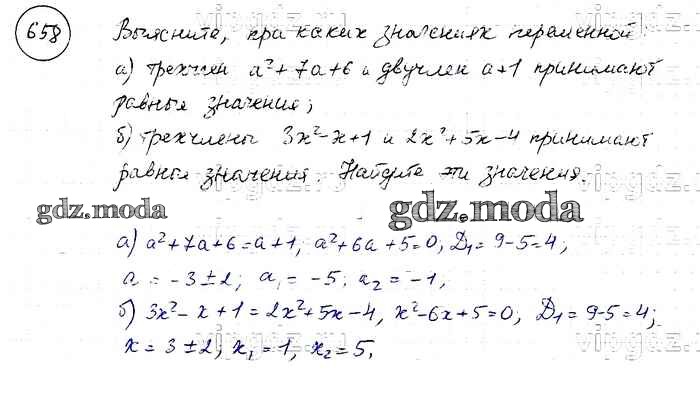 ОТВЕТ на задание № 658 Учебник по Алгебре 8 класс Макарычев