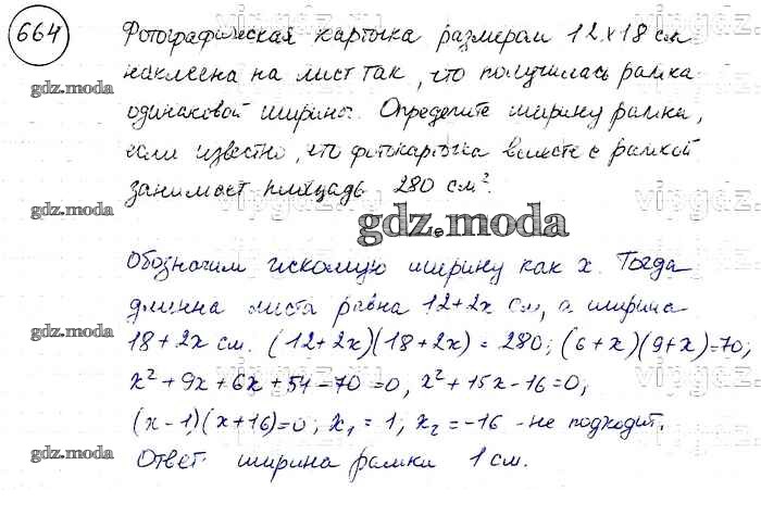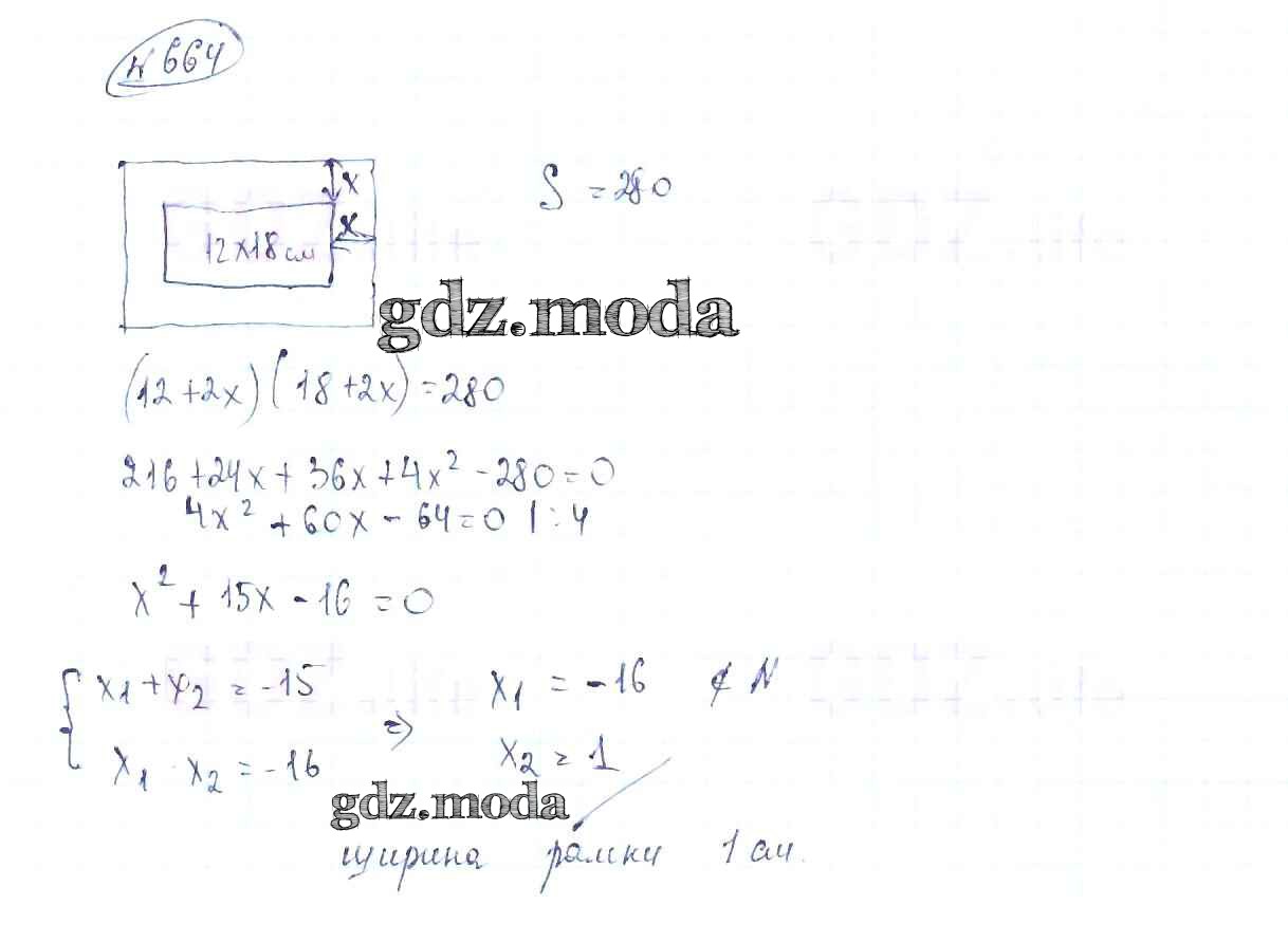 ОТВЕТ на задание № 664 Учебник по Алгебре 8 класс Макарычев