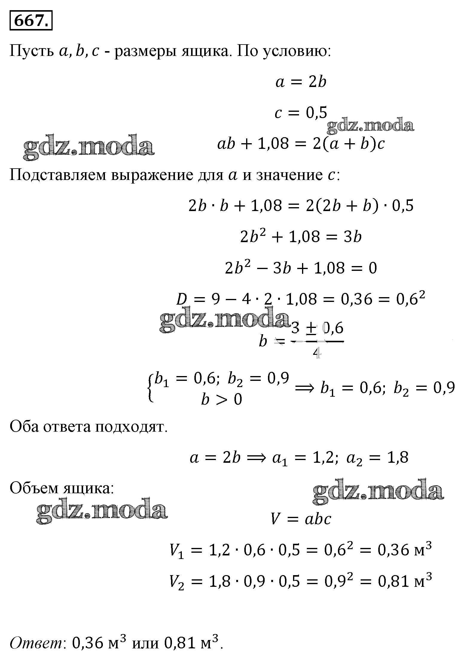 ОТВЕТ на задание № 667 Учебник по Алгебре 8 класс Макарычев