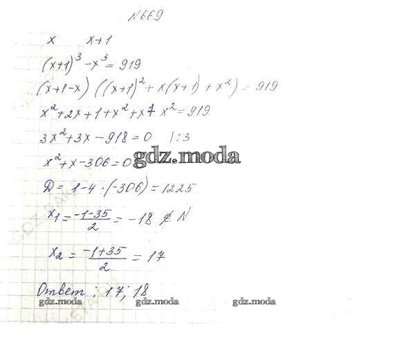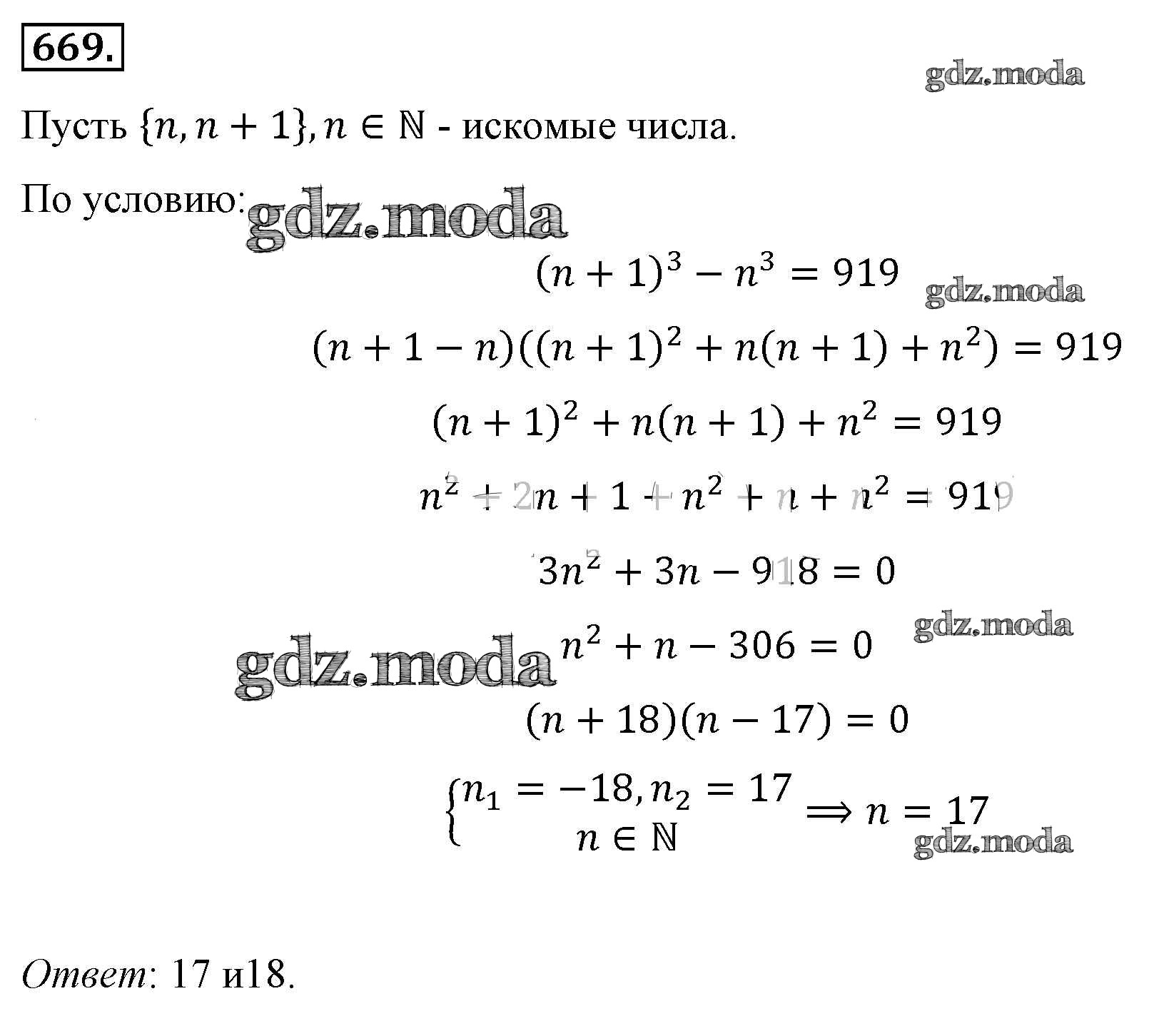 ОТВЕТ на задание № 669 Учебник по Алгебре 8 класс Макарычев