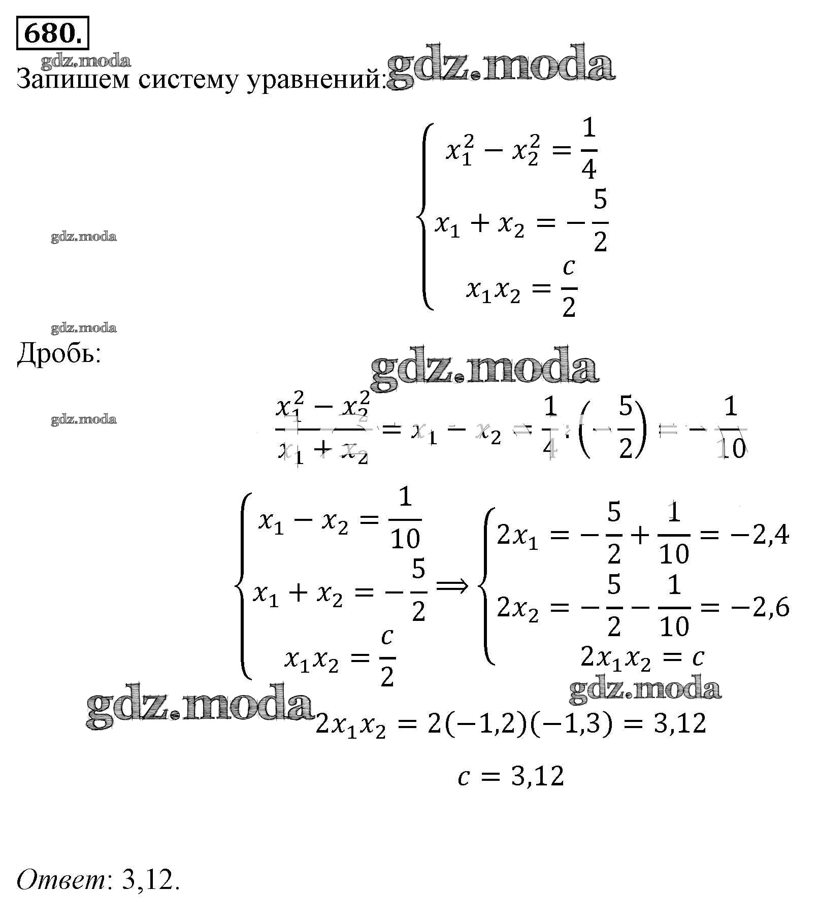 ОТВЕТ на задание № 680 Учебник по Алгебре 8 класс Макарычев