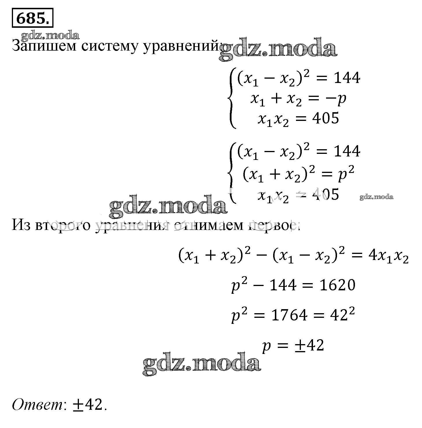 ОТВЕТ на задание № 685 Учебник по Алгебре 8 класс Макарычев