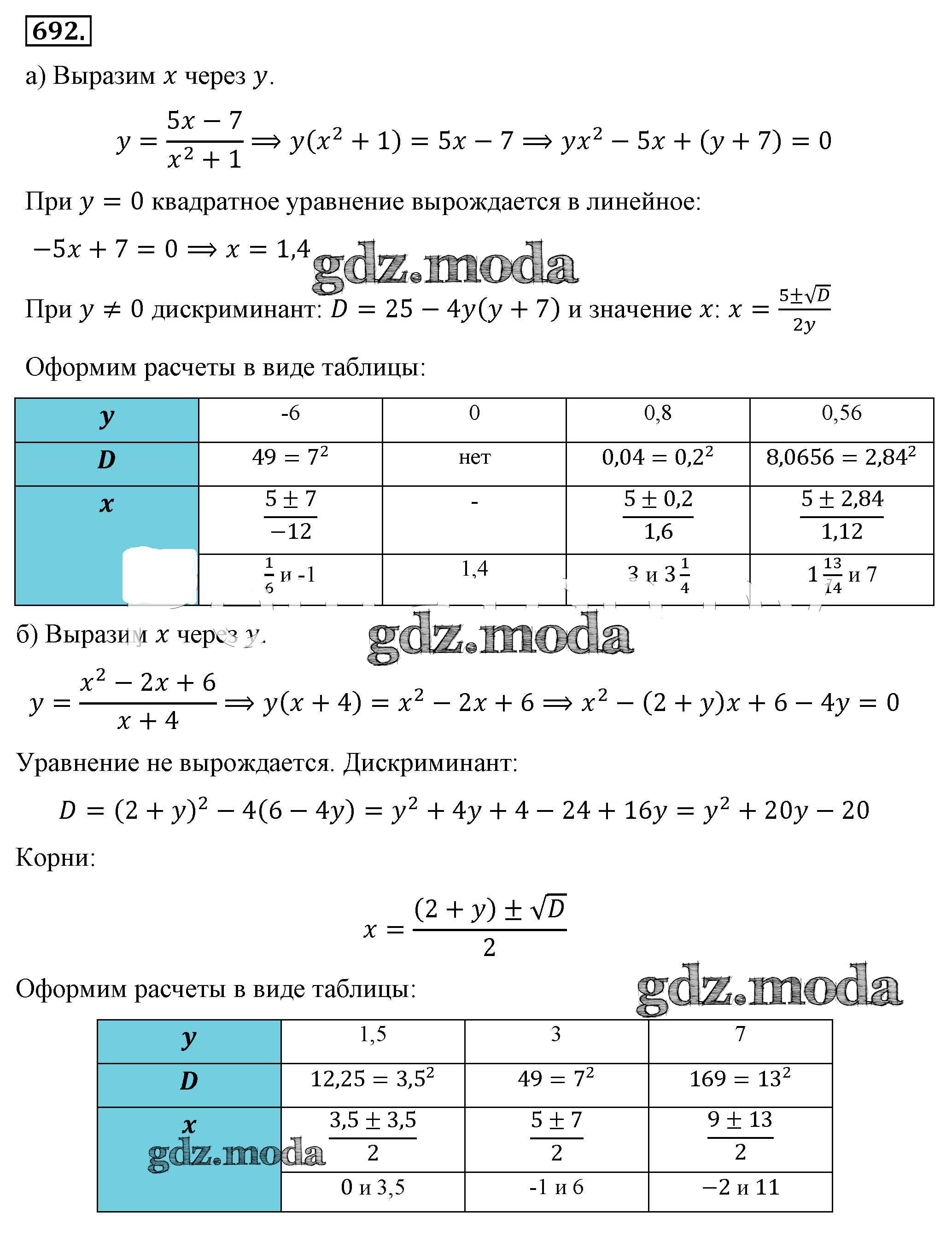 ОТВЕТ на задание № 692 Учебник по Алгебре 8 класс Макарычев