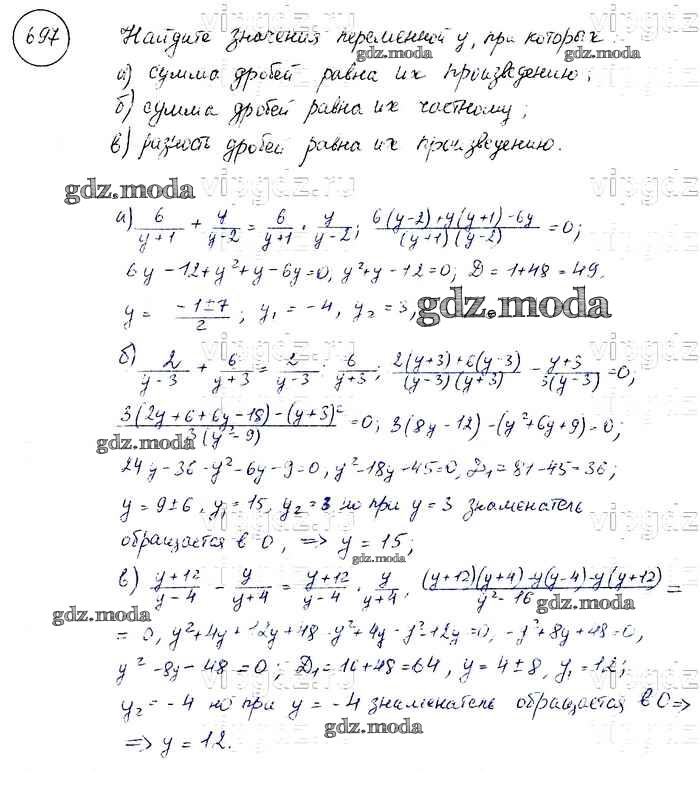 ОТВЕТ на задание № 697 Учебник по Алгебре 8 класс Макарычев