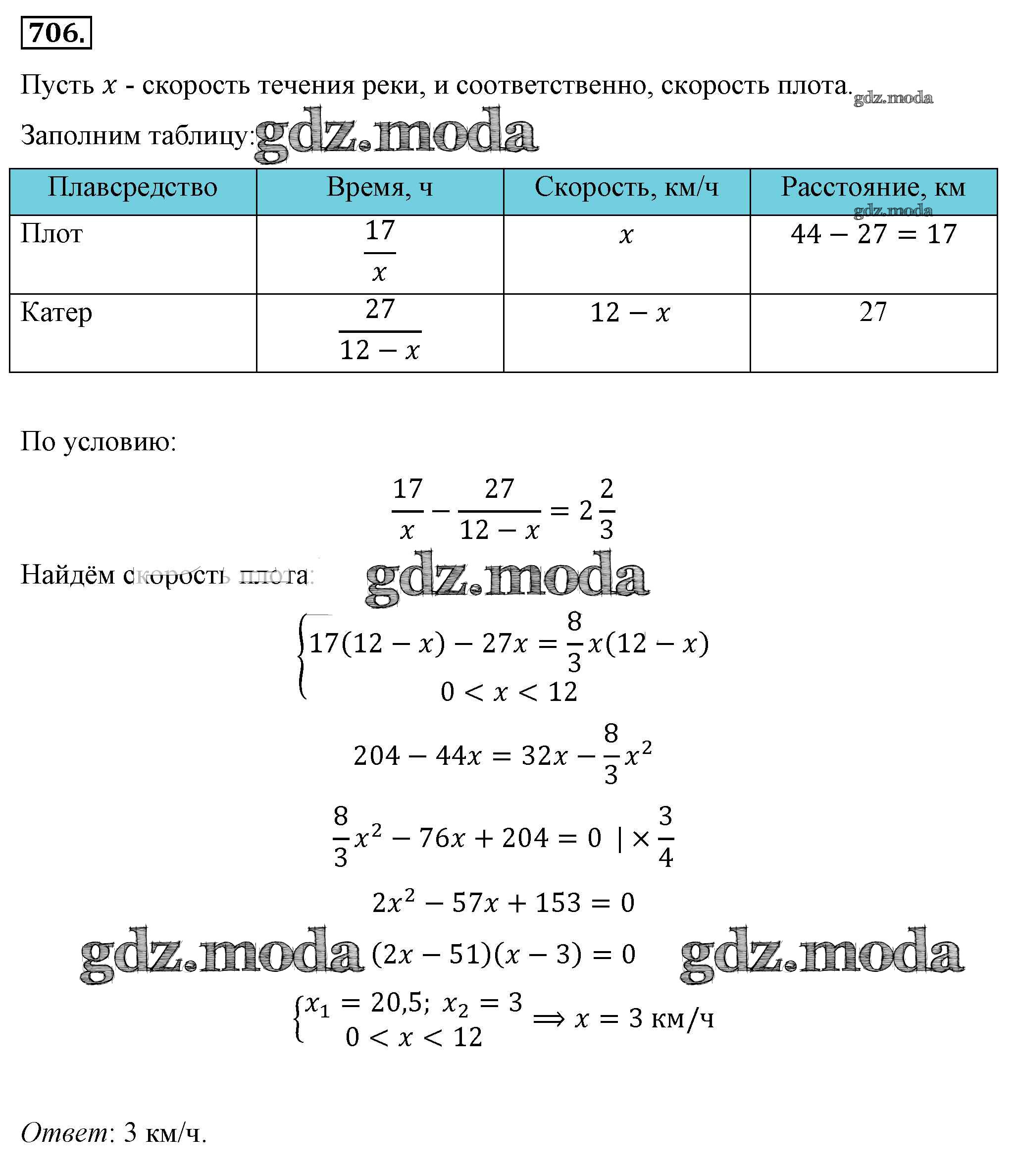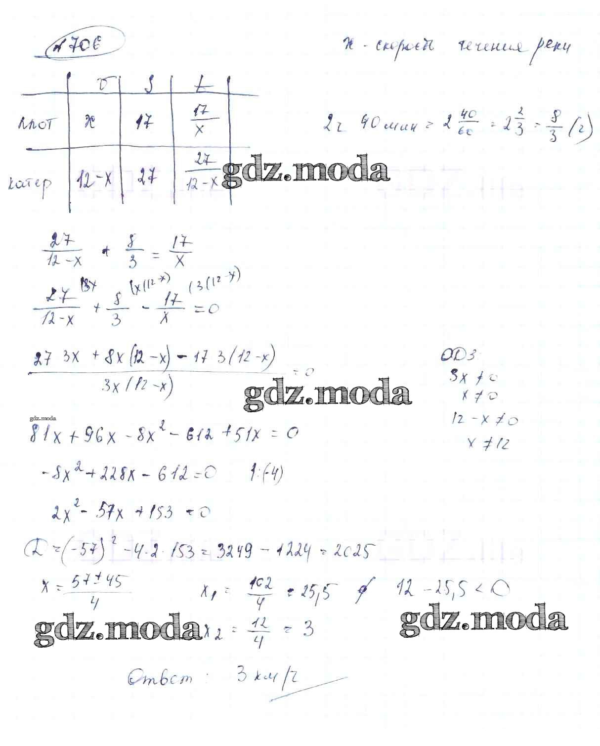 ОТВЕТ на задание № 706 Учебник по Алгебре 8 класс Макарычев