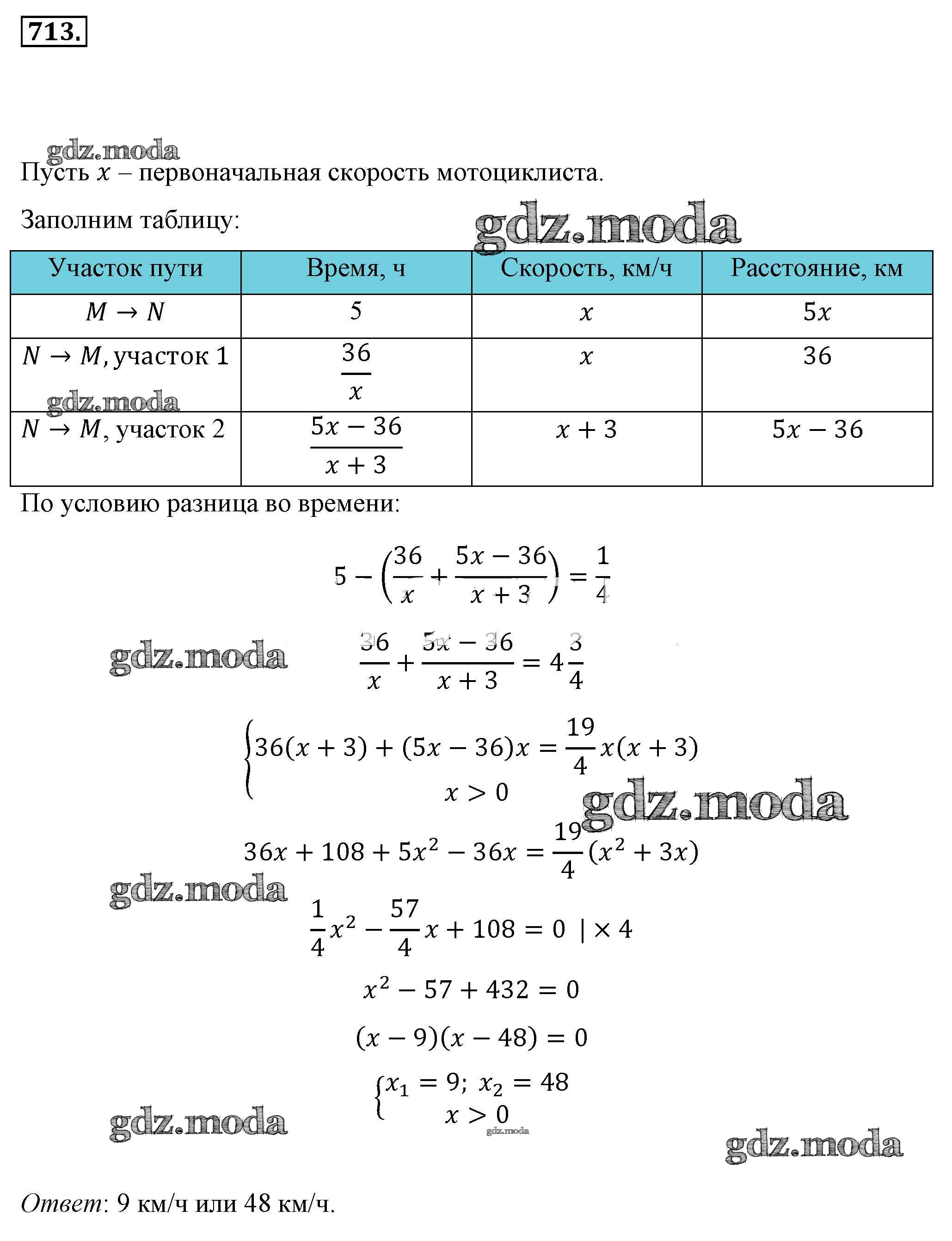 ОТВЕТ на задание № 713 Учебник по Алгебре 8 класс Макарычев
