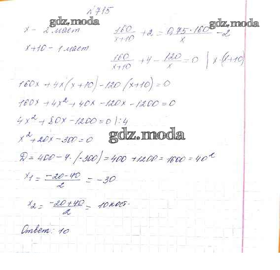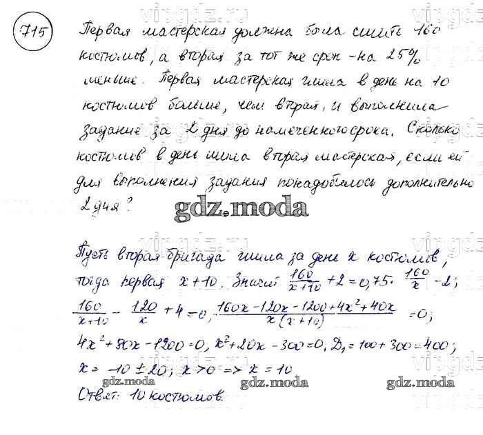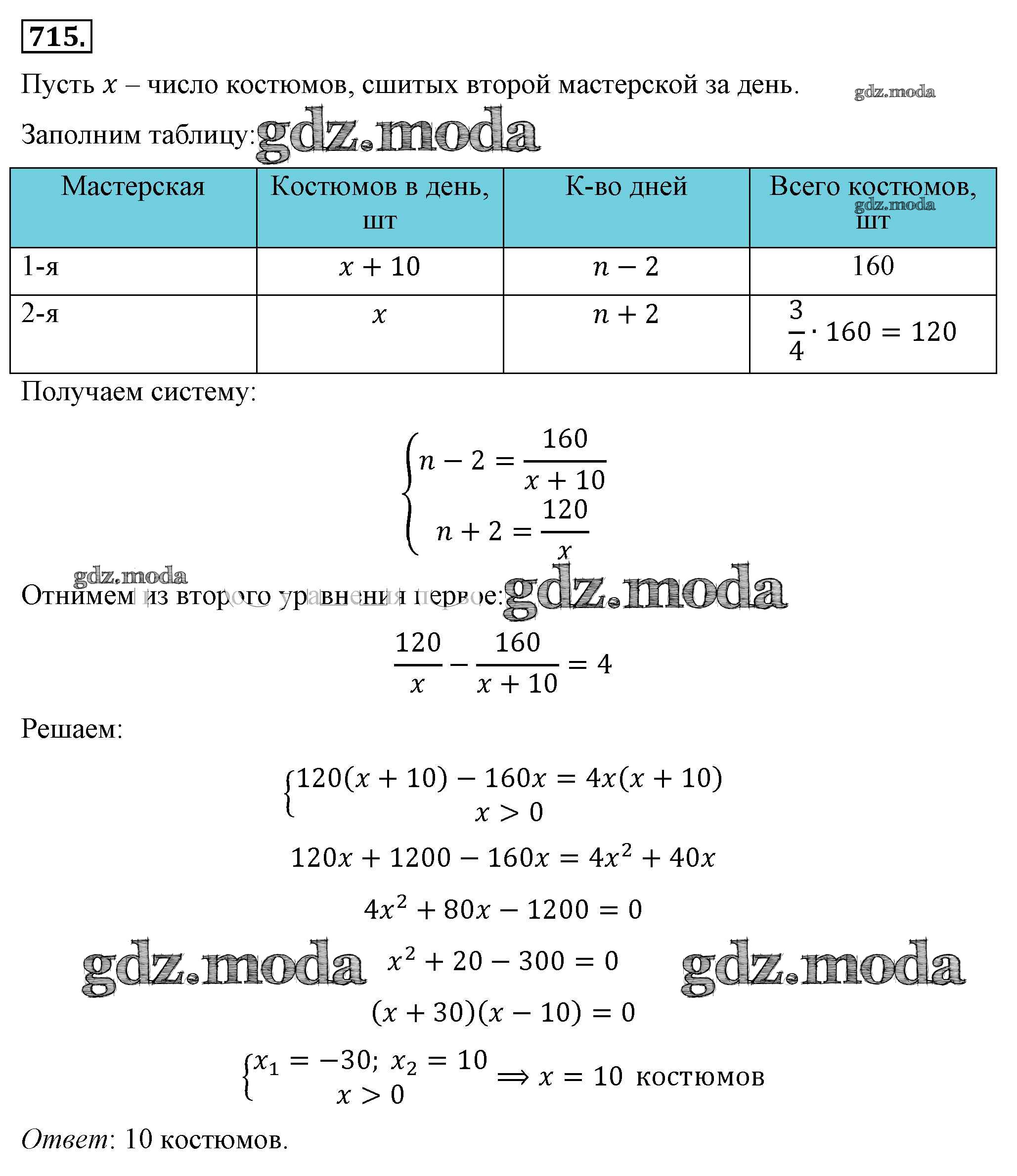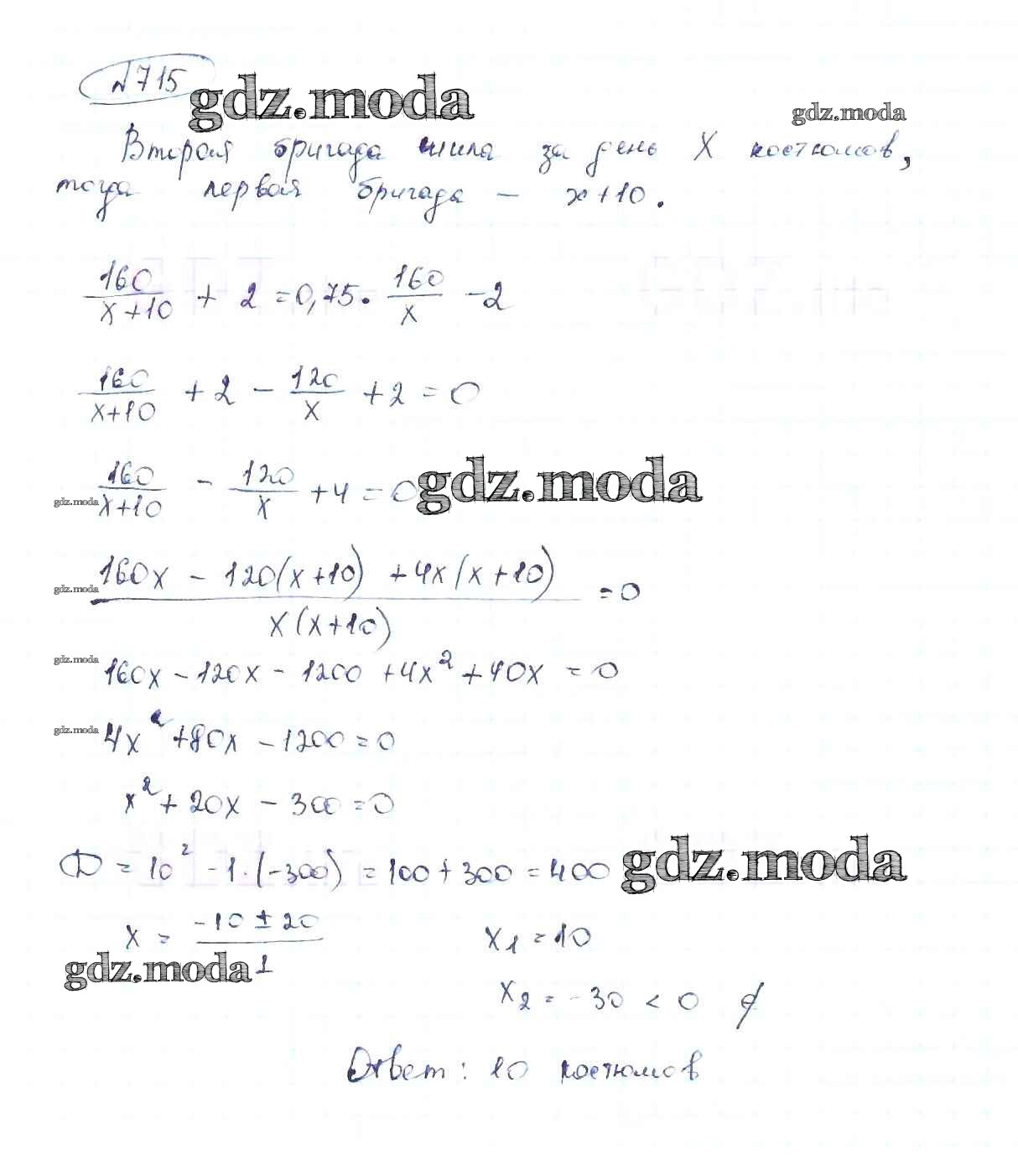ОТВЕТ на задание № 715 Учебник по Алгебре 8 класс Макарычев